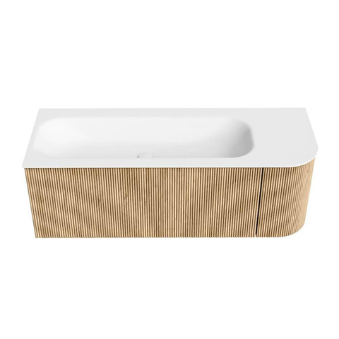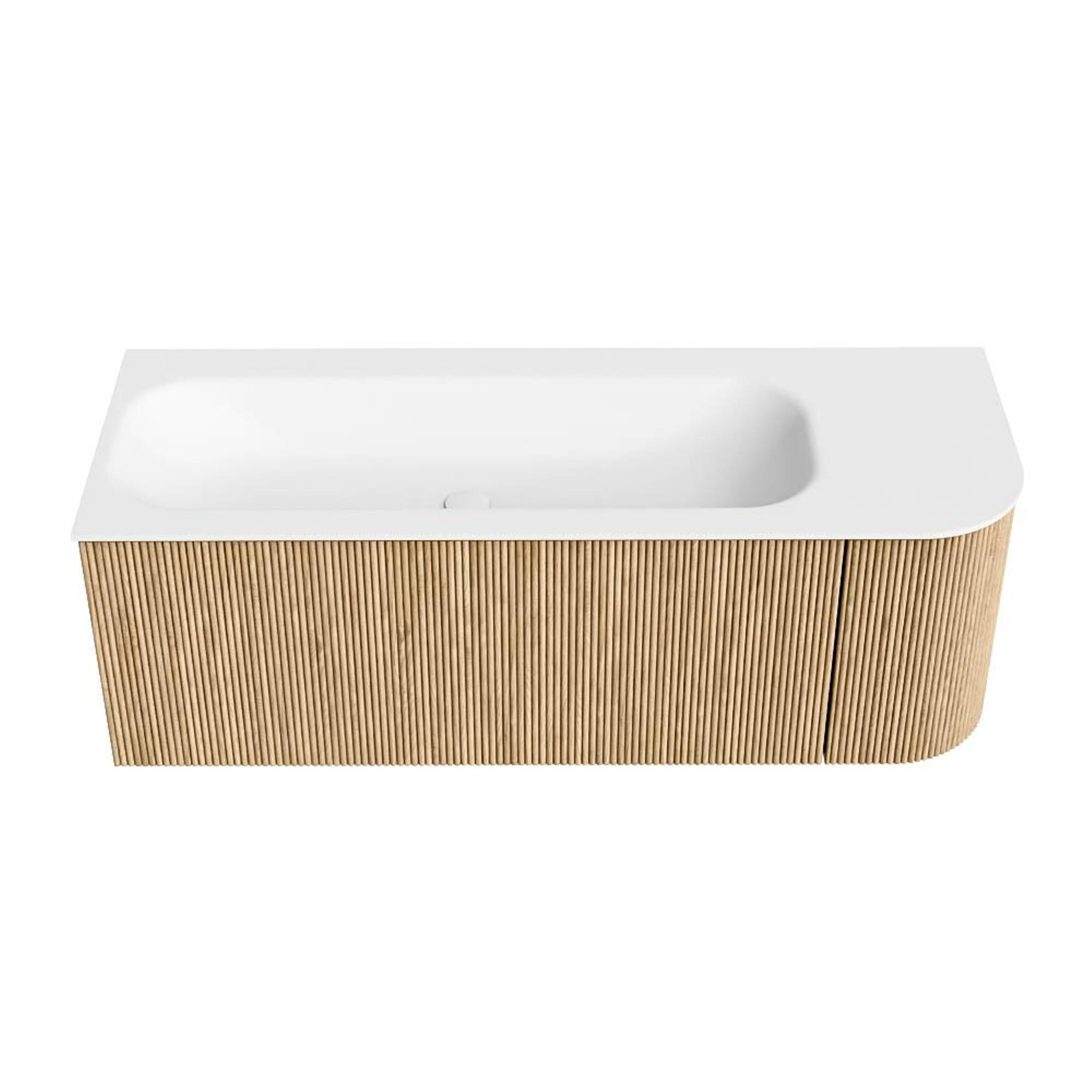 MONDIAZ KURVE 125cm badmeubel met module 25 R kleur Oak met 1 lade en 1 deur. Wastafel BIG MEDIUM links zonder kraangat Talc.