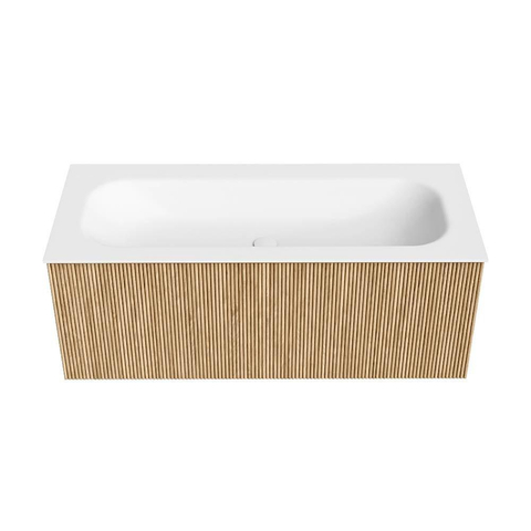 Het ultieme badmeubel dat je badkamer transformeert tot een oase van verfijning. Met zijn halfronde, verticale stroken van massief eiken, verkrijgbaar in de kleuren Oak en Walnut, straalt KURVE vakmanschap uit in elk detail. De zachte rondingen en slim ontworpen deurtjes, elk 40cm hoog, nodigen uit tot gebruik, terwijl de ruimte binnenin optimaal benut wordt dankzij de royale lade van dezelfde hoogte.