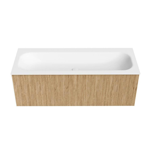 Het ultieme badmeubel dat je badkamer transformeert tot een oase van verfijning. Met zijn halfronde, verticale stroken van massief eiken, verkrijgbaar in de kleuren Oak en Walnut, straalt KURVE vakmanschap uit in elk detail. De zachte rondingen en slim ontworpen deurtjes, elk 40cm hoog, nodigen uit tot gebruik, terwijl de ruimte binnenin optimaal benut wordt dankzij de royale lade van dezelfde hoogte.