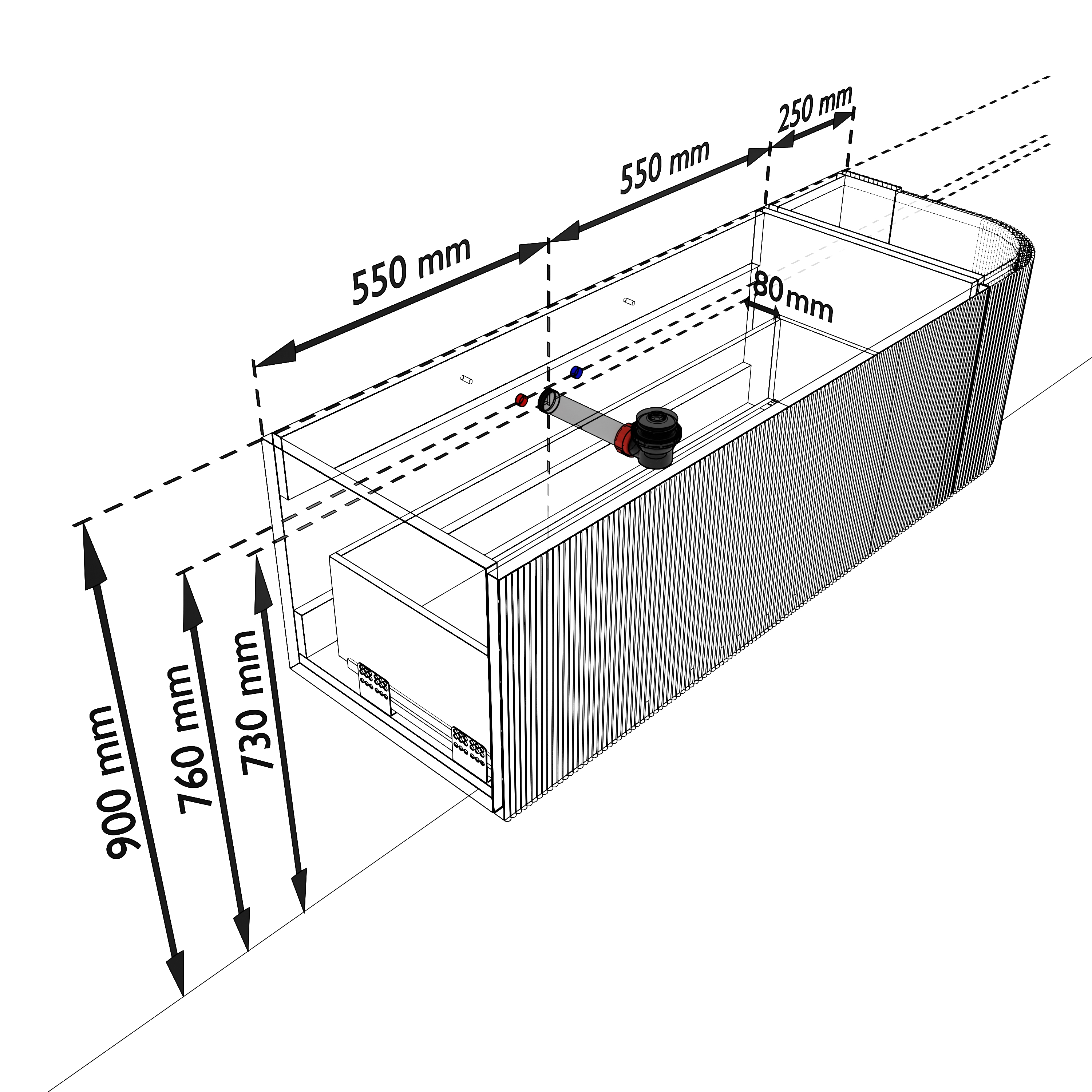- Geen water langs het meubel loopt.