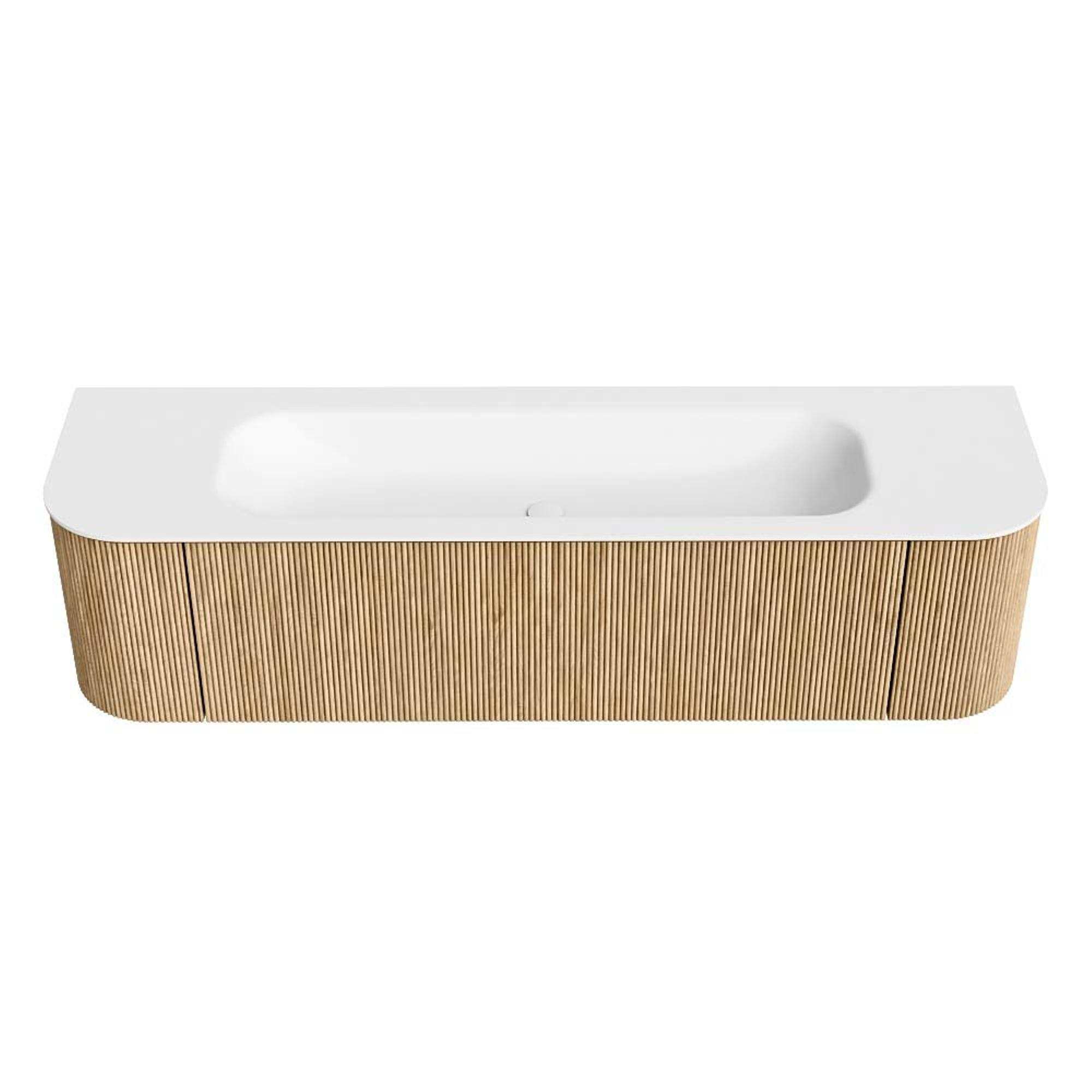 Het ultieme badmeubel dat je badkamer transformeert tot een oase van verfijning. Met zijn halfronde, verticale stroken van massief eiken, verkrijgbaar in de kleuren Oak en Walnut, straalt KURVE vakmanschap uit in elk detail. De zachte rondingen en slim ontworpen deurtjes, elk 40cm hoog, nodigen uit tot gebruik, terwijl de ruimte binnenin optimaal benut wordt dankzij de royale lade van dezelfde hoogte.