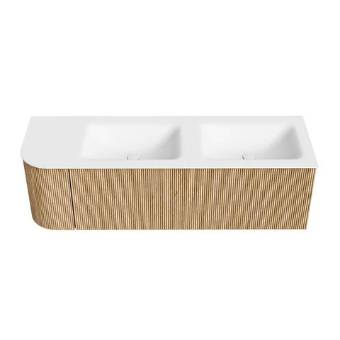 Het ultieme badmeubel dat je badkamer transformeert tot een oase van verfijning. Met zijn halfronde, verticale stroken van massief eiken, verkrijgbaar in de kleuren Oak en Walnut, straalt KURVE vakmanschap uit in elk detail. De zachte rondingen en slim ontworpen deurtjes, elk 40cm hoog, nodigen uit tot gebruik, terwijl de ruimte binnenin optimaal benut wordt dankzij de royale lade van dezelfde hoogte.