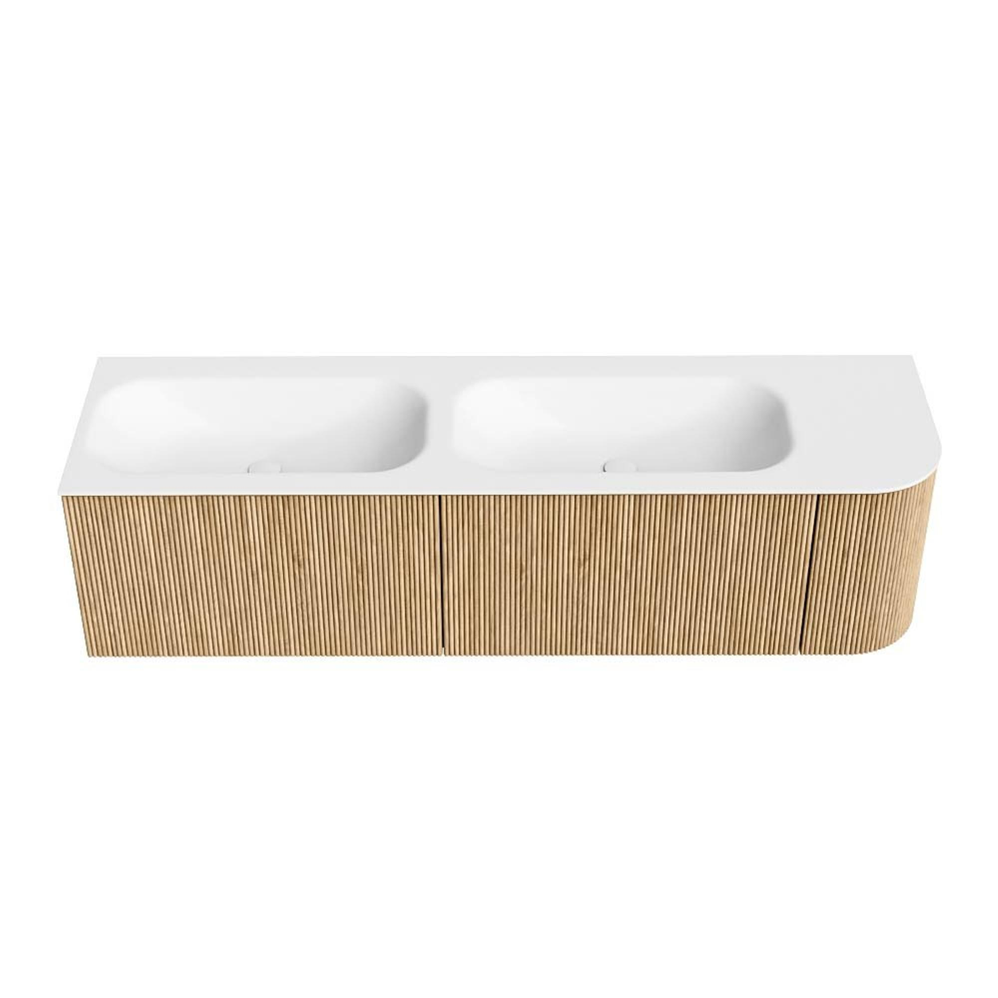 MONDIAZ KURVE 165cm badmeubel met module 25 R kleur Oak met 2 lades en 1 deur. Wastafel BIG SMALL dubbel / links zonder kraangat Talc.
