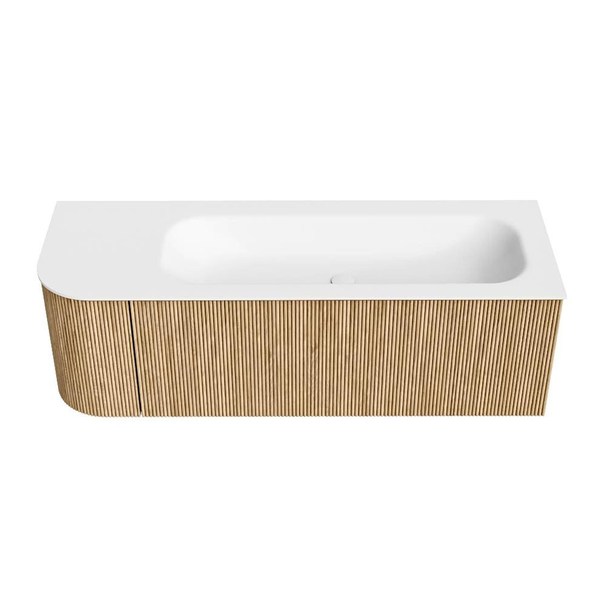 MONDIAZ KURVE 135cm badmeubel met module 25 L kleur Oak met 1 lade en 1 deur. Wastafel BIG MEDIUM rechts zonder kraangat Talc.