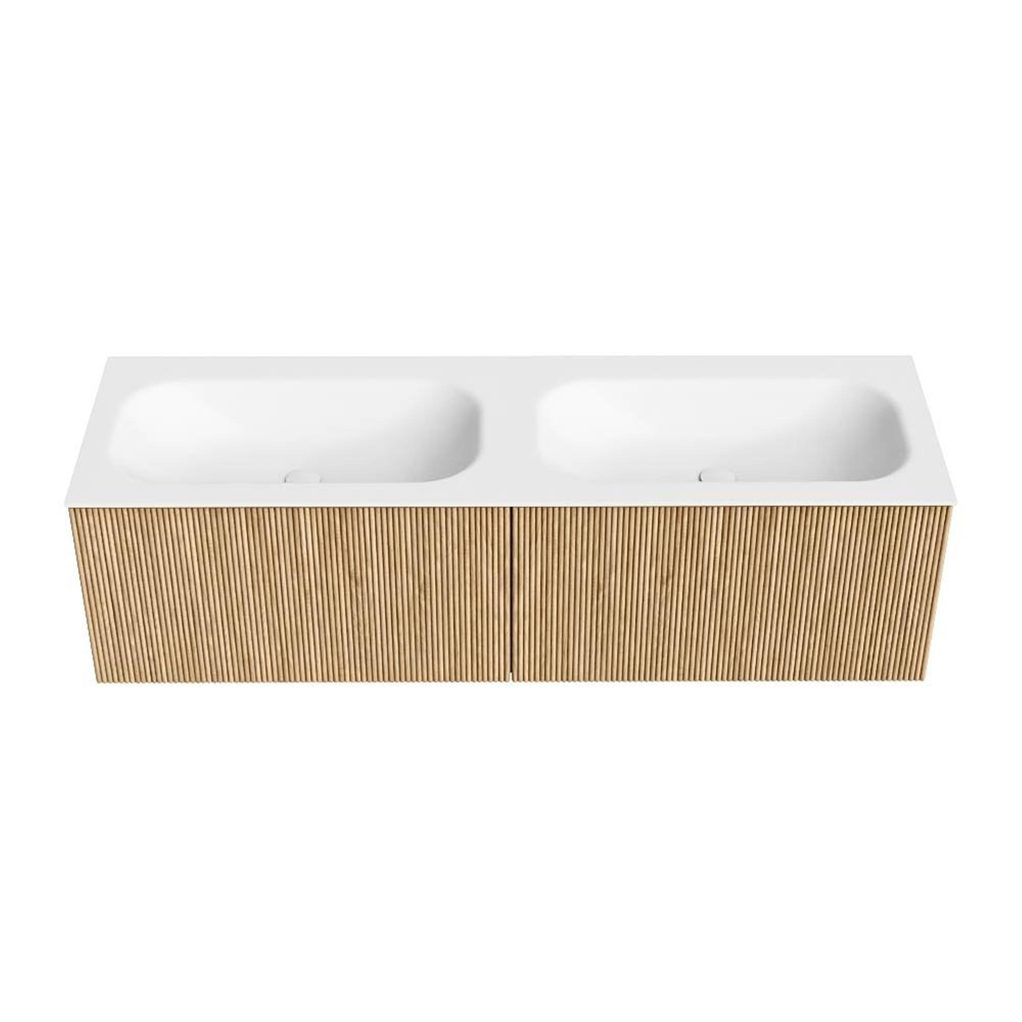 MONDIAZ KURVE 150cm badmeubel kleur Oak met 2 lades. Wastafel BIG SMALL dubbel 2 kraangaten Talc.