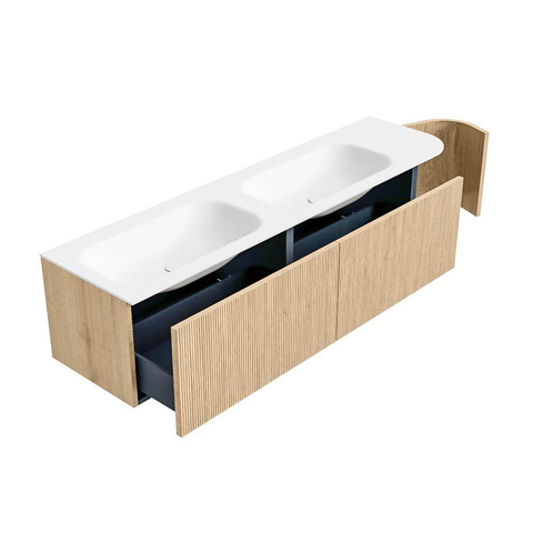 MONDIAZ KURVE 175cm badmeubel met module 25 R kleur Oak met 2 lades en 1 deur. Wastafel BIG SMALL dubbel / links 2 kraangaten Talc.