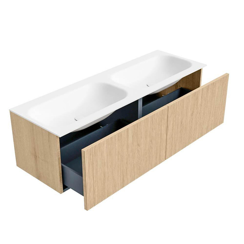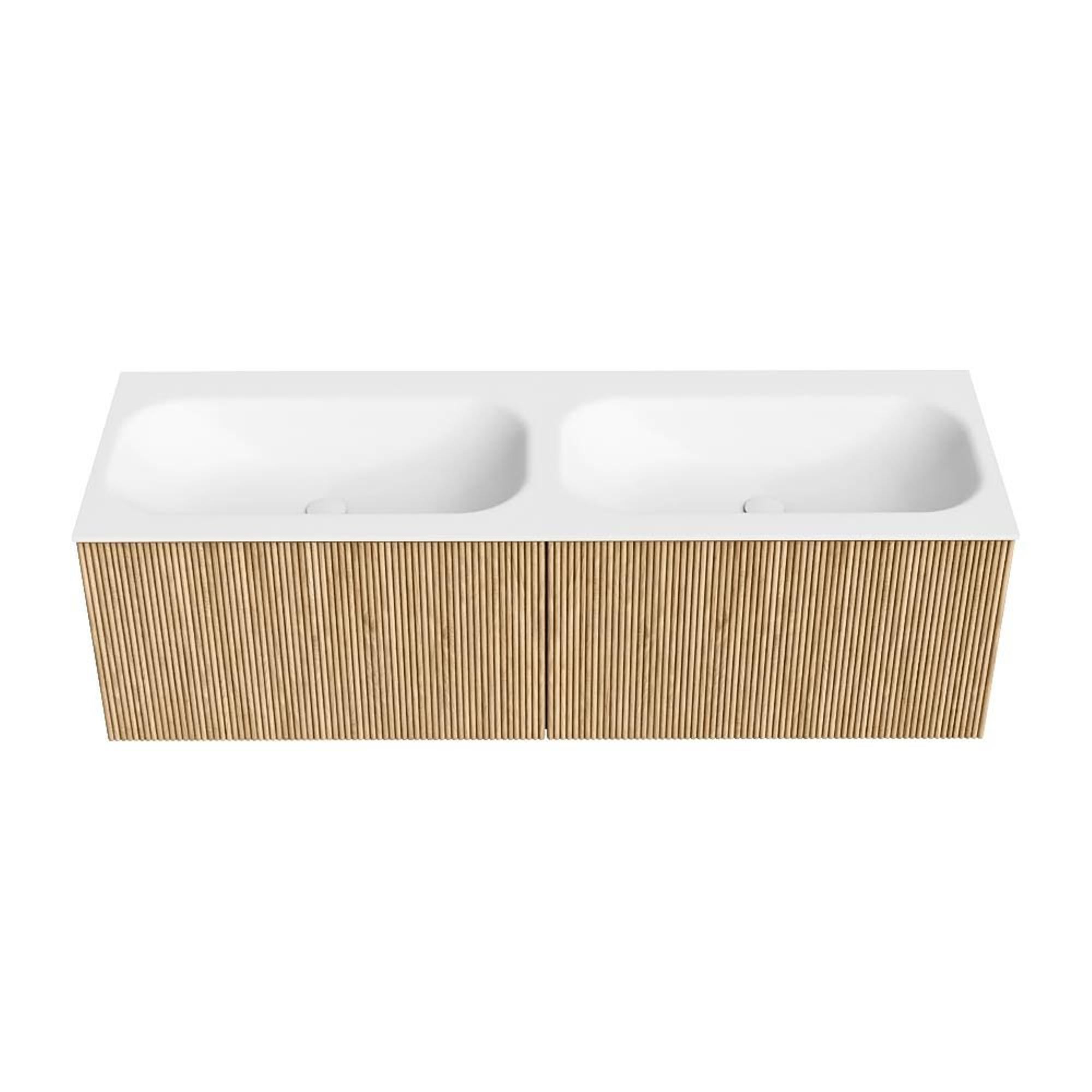 MONDIAZ KURVE 140cm badmeubel kleur Oak met 2 lades. Wastafel BIG SMALL dubbel 2 kraangaten Talc.
