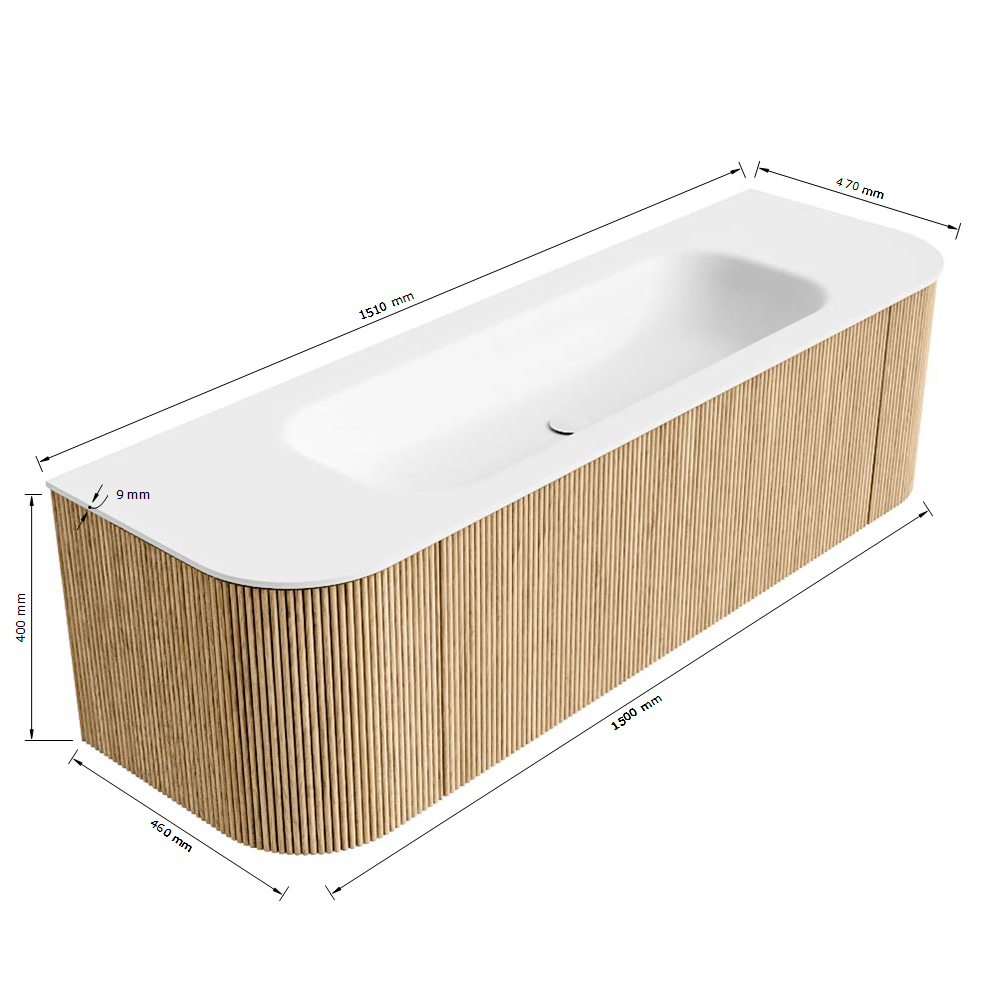 - Breedte wastafel: 151cm