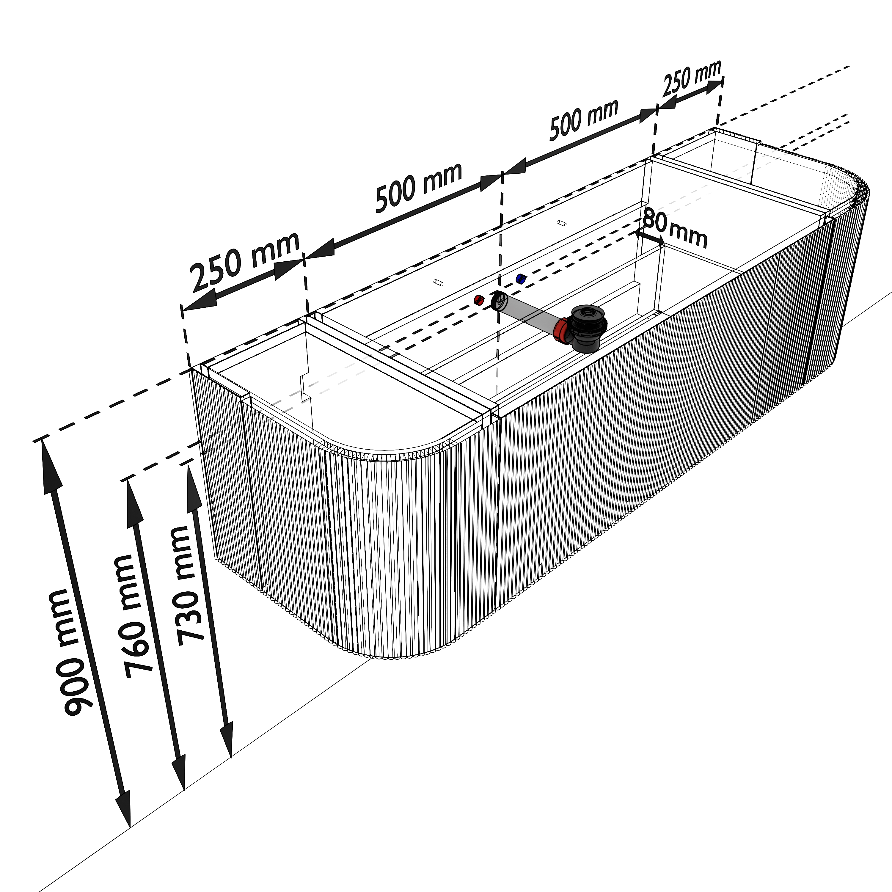 - Hoogte wastafel: 0,9cm