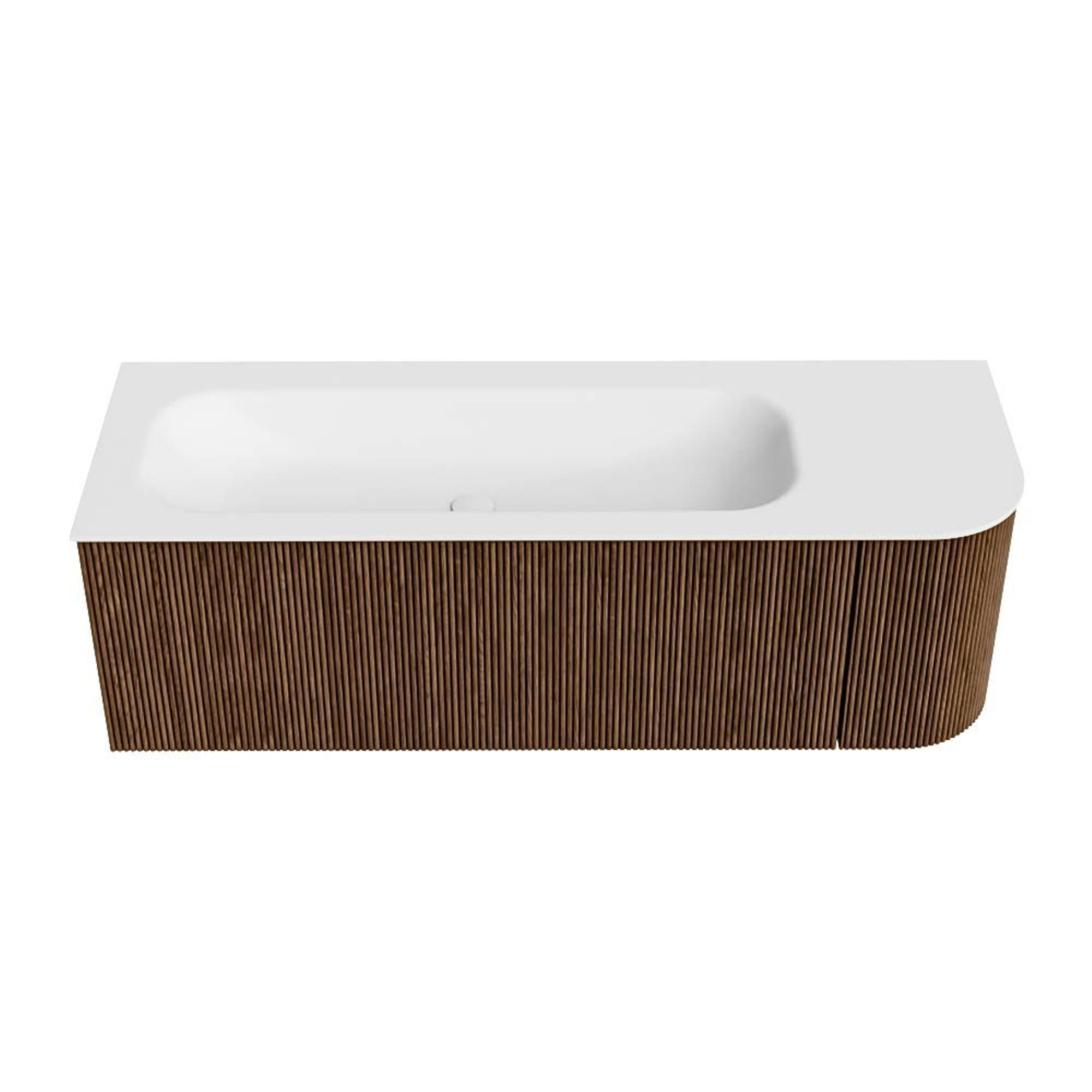 MONDIAZ KURVE 135cm badmeubel met module 25 R kleur Walnut met 1 lade en 1 deur. Wastafel BIG MEDIUM links zonder kraangat Talc.