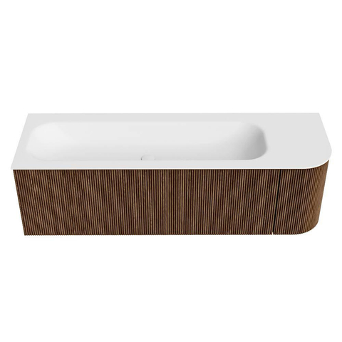 MONDIAZ KURVE 145cm badmeubel met module 25 R kleur Walnut met 1 lade en 1 deur. Wastafel BIG LARGE links zonder kraangat Talc.