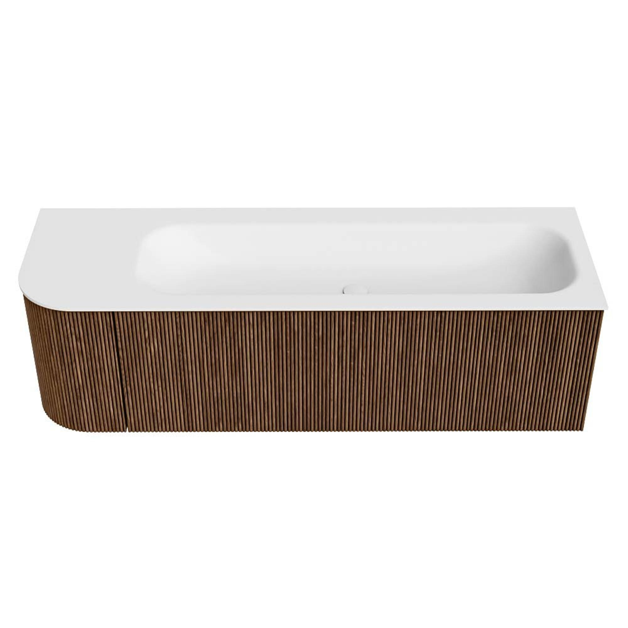 MONDIAZ KURVE 145cm badmeubel met module 25 L kleur Walnut met 1 lade en 1 deur. Wastafel BIG LARGE rechts zonder kraangat Talc.