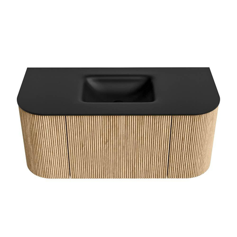 MONDIAZ KURVE 100cm badmeubel met module 25 Len R kleur Oak met 1 lade en 2 deuren. Wastafel GRUNNE midden 1 kraangat Urban.