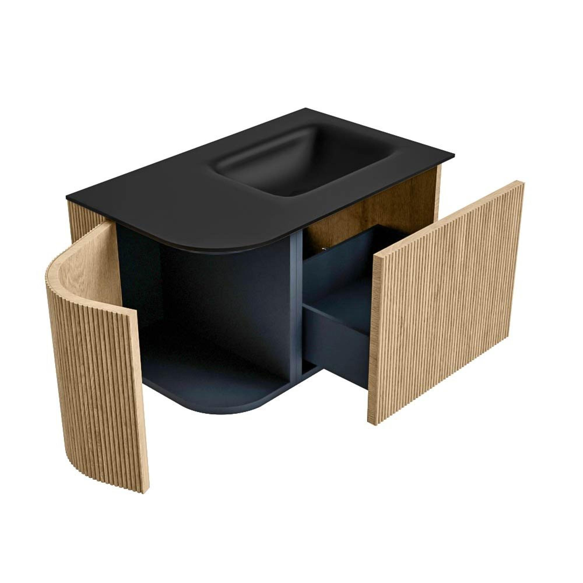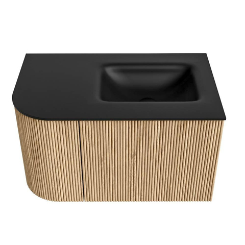 MONDIAZ KURVE 75cm badmeubel met module 25 L kleur Oak met 1 lade en 1 deur. Wastafel GRUNNE rechts 1 kraangat Urban.
