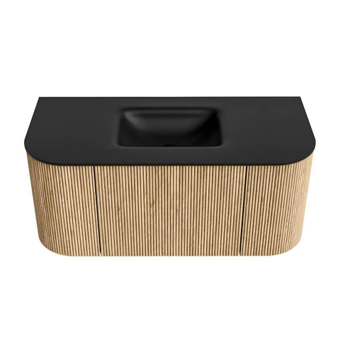 MONDIAZ KURVE 100cm badmeubel met module 25 Len R kleur Oak met 1 lade en 2 deuren. Wastafel GRUNNE midden zonder kraangat Urban.