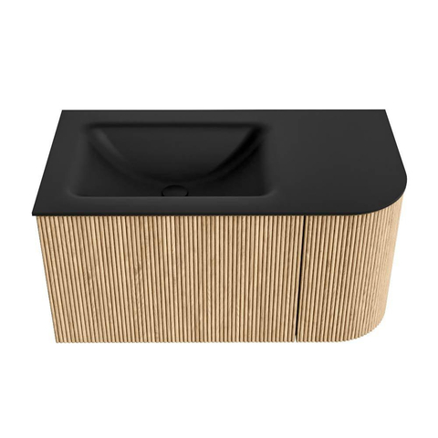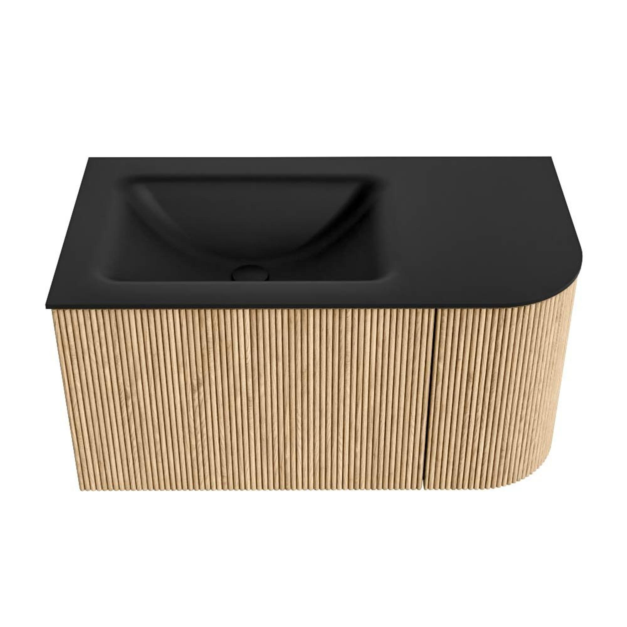 MONDIAZ KURVE 85cm badmeubel met module 25 R kleur Oak met 1 lade en 1 deur. Wastafel CLOUD links 1 kraangat Urban.