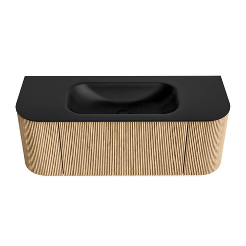 MONDIAZ KURVE 120cm badmeubel met module 25 Len R kleur Oak met 1 lade en 2 deuren. Wastafel BIG SMALL midden 1 kraangat Urban.