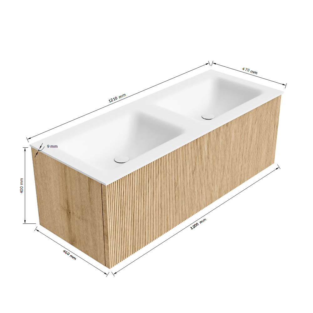 Het ultieme badmeubel dat je badkamer transformeert tot een oase van verfijning. Met zijn halfronde, verticale stroken van massief eiken, verkrijgbaar in de kleuren Oak en Walnut, straalt KURVE vakmanschap uit in elk detail. De zachte rondingen en slim ontworpen deurtjes, elk 40cm hoog, nodigen uit tot gebruik, terwijl de ruimte binnenin optimaal benut wordt dankzij de royale lade van dezelfde hoogte.