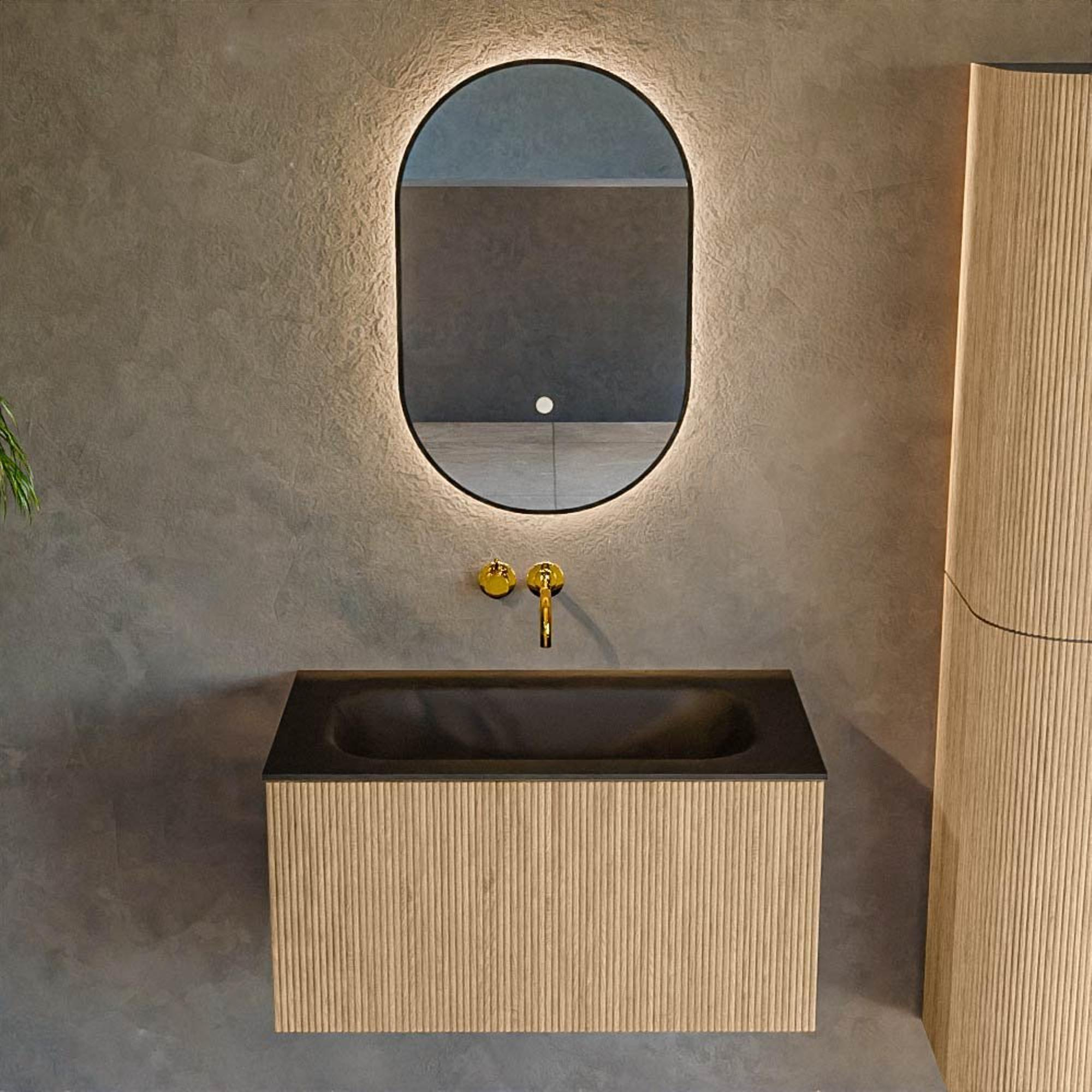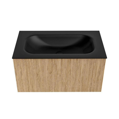 MONDIAZ KURVE 80cm badmeubel kleur Oak met 1 lade. Wastafel BIG SMALL midden zonder kraangat Urban.
