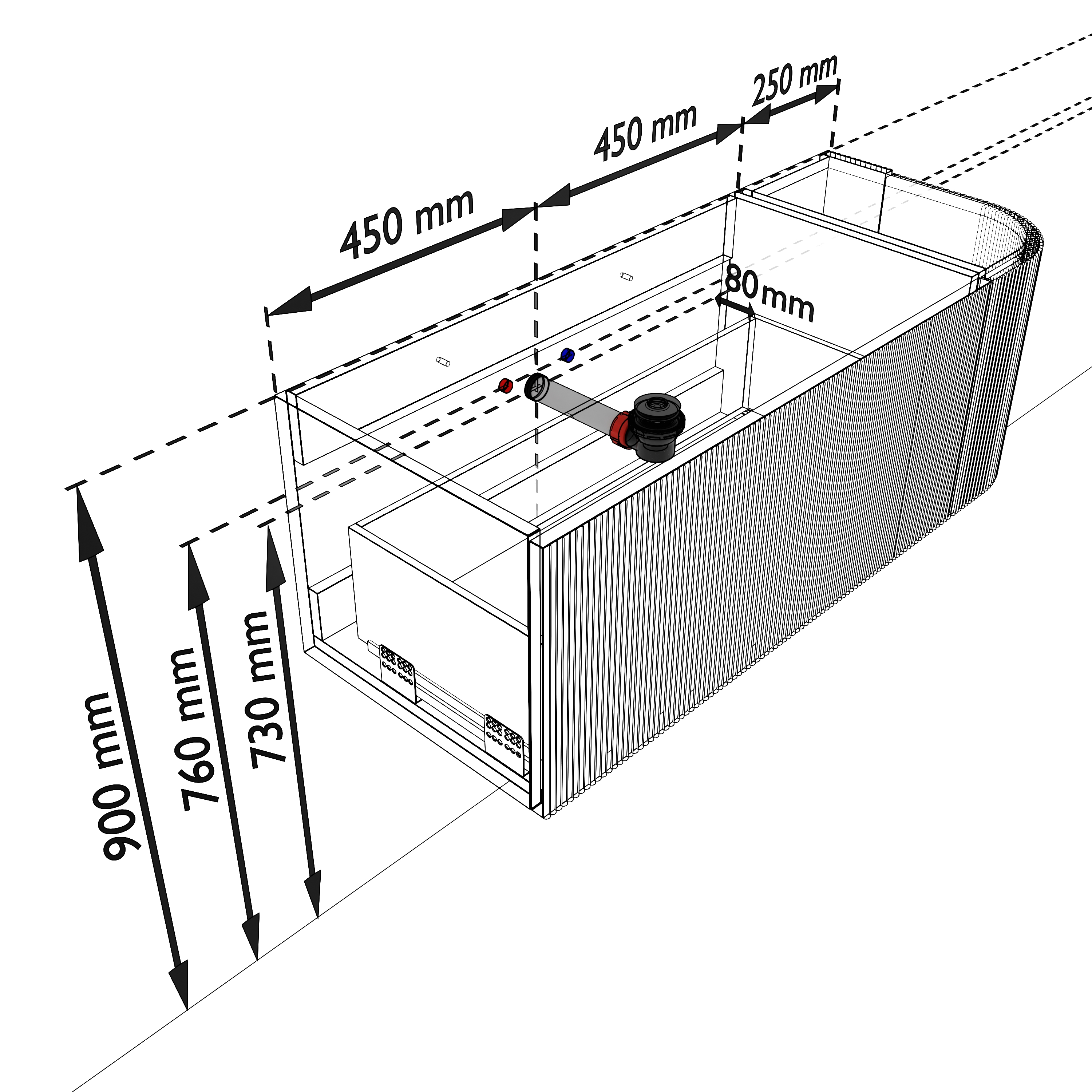 - Geen water langs het meubel loopt.