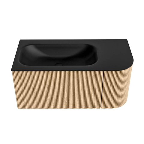 MONDIAZ KURVE 95cm badmeubel met module 25 R kleur Oak met 1 lade en 1 deur. Wastafel BIG SMALL links zonder kraangat Urban.