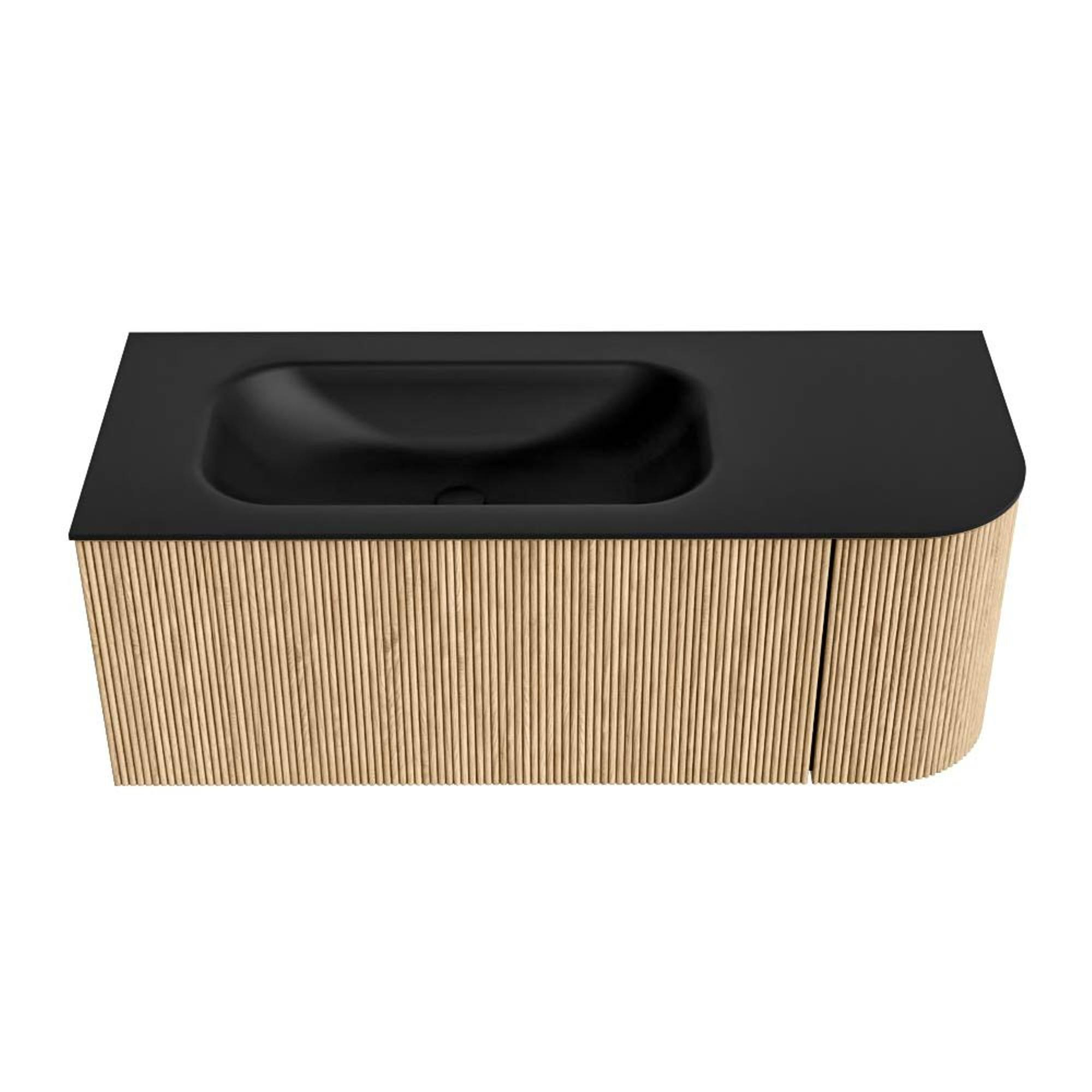 MONDIAZ KURVE 115cm badmeubel met module 25 R kleur Oak met 1 lade en 1 deur. Wastafel BIG SMALL links 1 kraangat Urban.