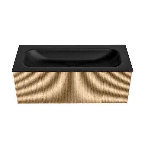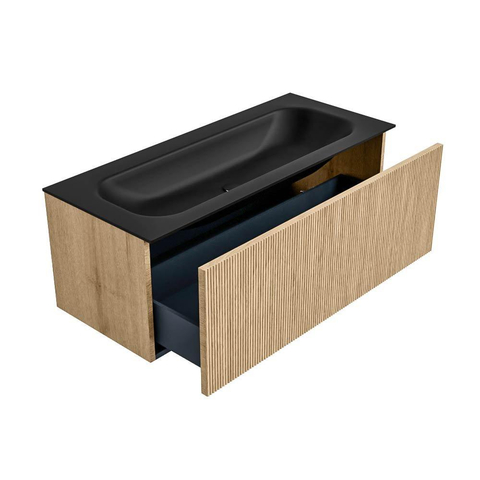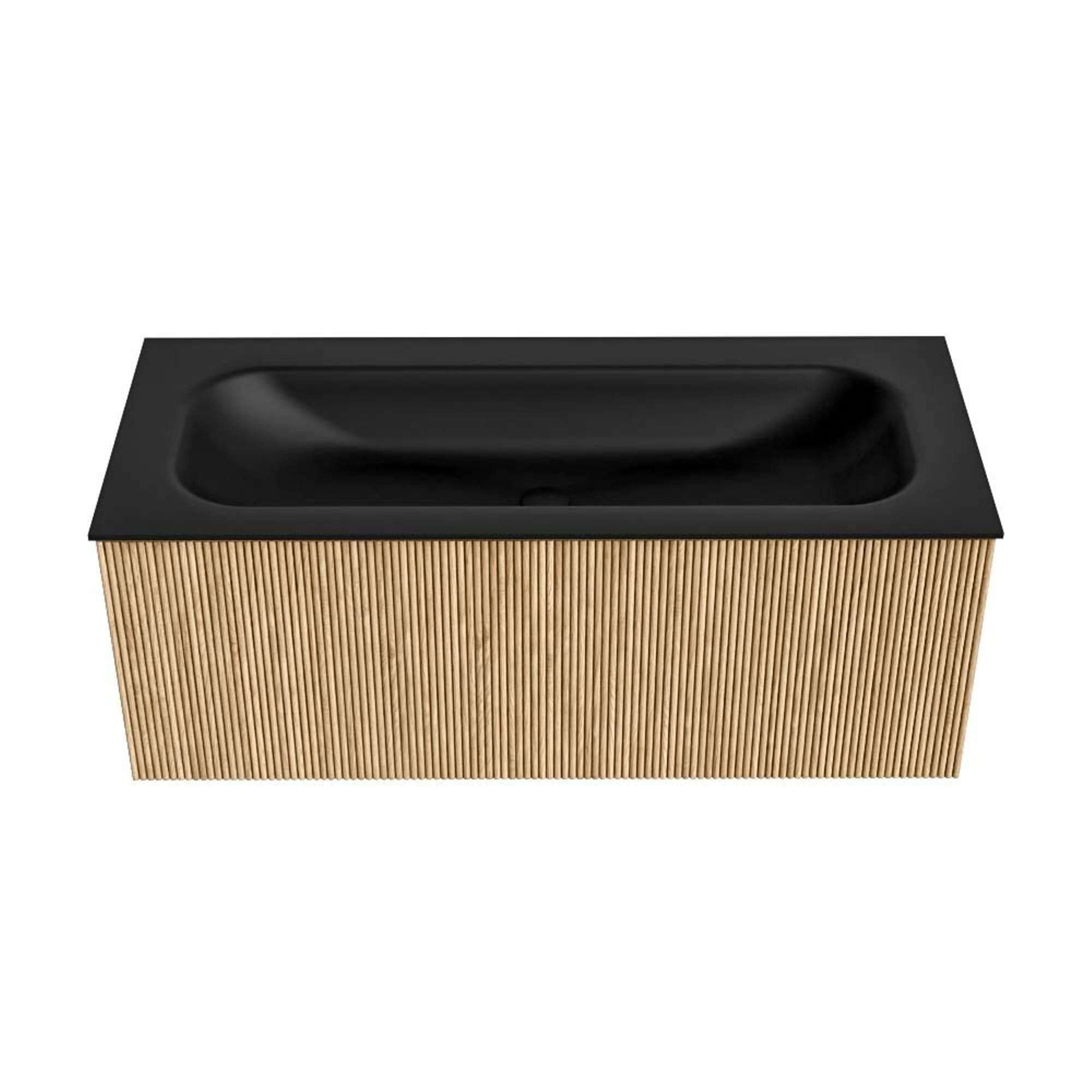 MONDIAZ KURVE 110cm badmeubel kleur Oak met 1 lade. Wastafel BIG MEDIUM midden zonder kraangat Urban.