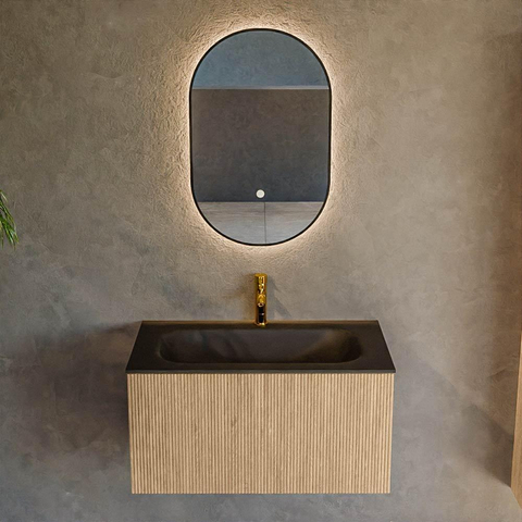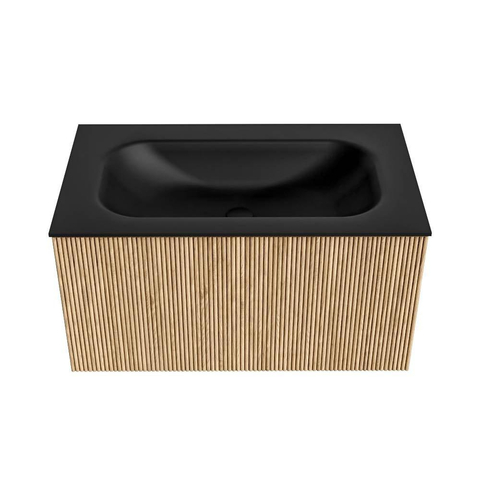 MONDIAZ KURVE 80cm badmeubel kleur Oak met 1 lade. Wastafel BIG SMALL midden 1 kraangat Urban.