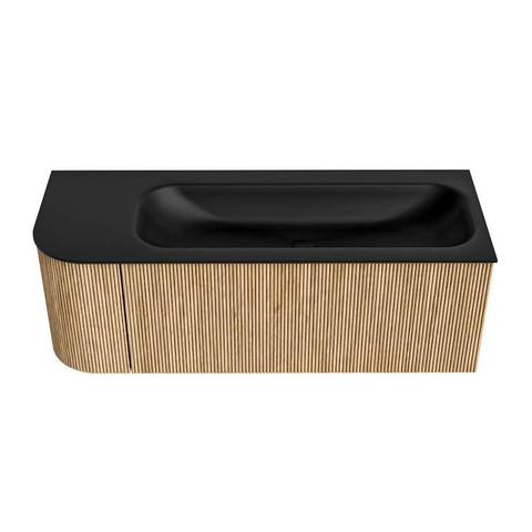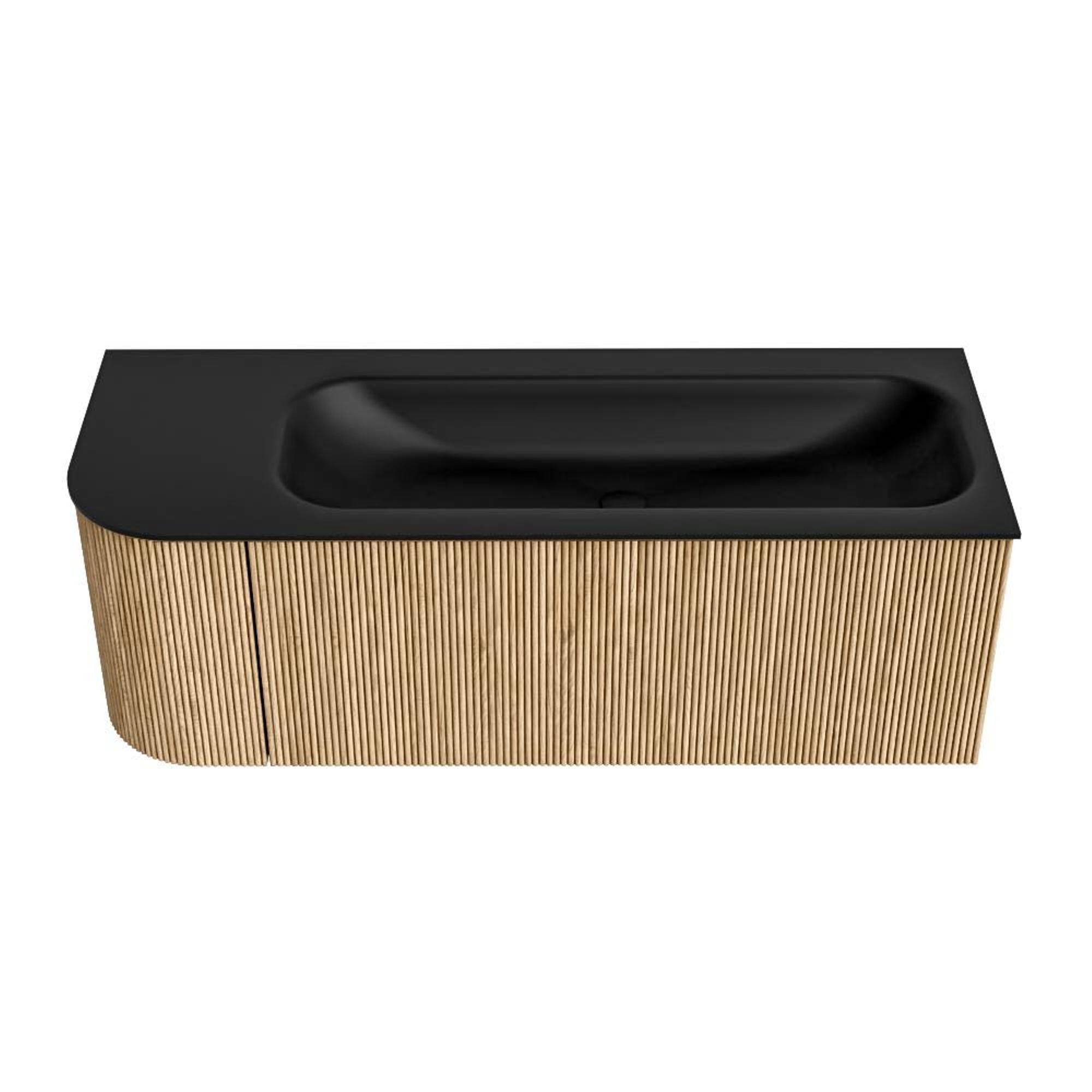 MONDIAZ KURVE 125cm badmeubel met module 25 L kleur Oak met 1 lade en 1 deur. Wastafel BIG MEDIUM rechts zonder kraangat Urban.