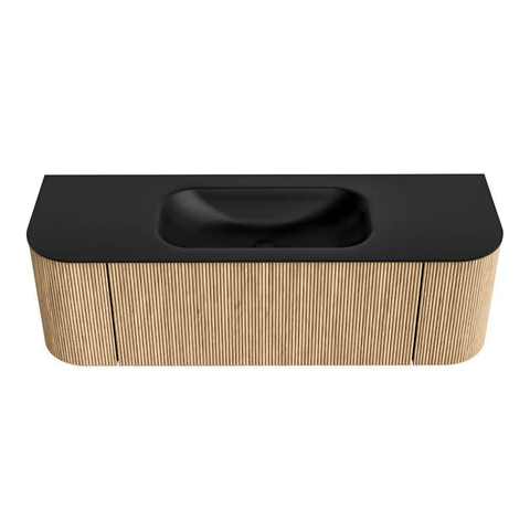 MONDIAZ KURVE 140cm badmeubel met module 25 Len R kleur Oak met 1 lade en 2 deuren. Wastafel BIG SMALL midden zonder kraangat Urban.