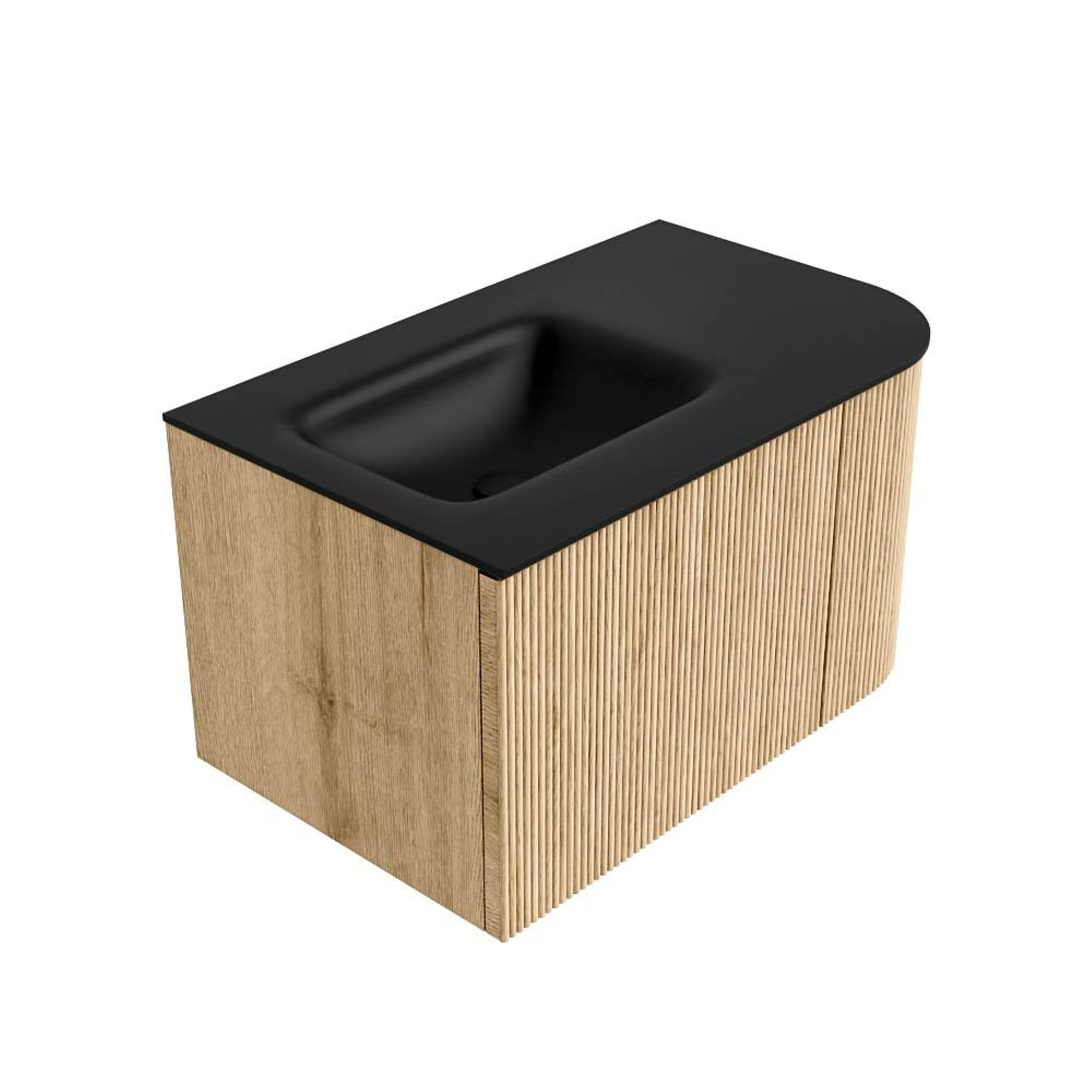 MONDIAZ KURVE 75cm badmeubel met module 25 R kleur Oak met 1 lade en 1 deur. Wastafel GRUNNE links 1 kraangat Urban.