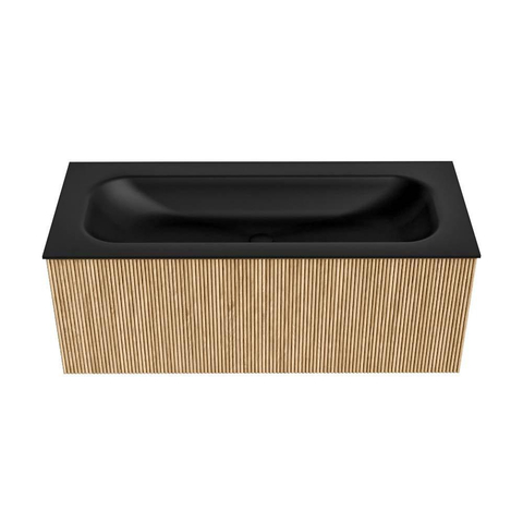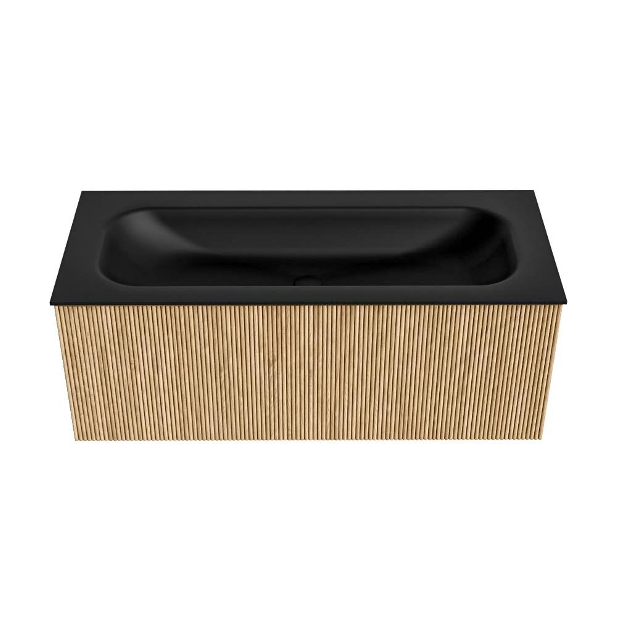 MONDIAZ KURVE 110cm badmeubel kleur Oak met 1 lade. Wastafel BIG MEDIUM midden 1 kraangat Urban.
