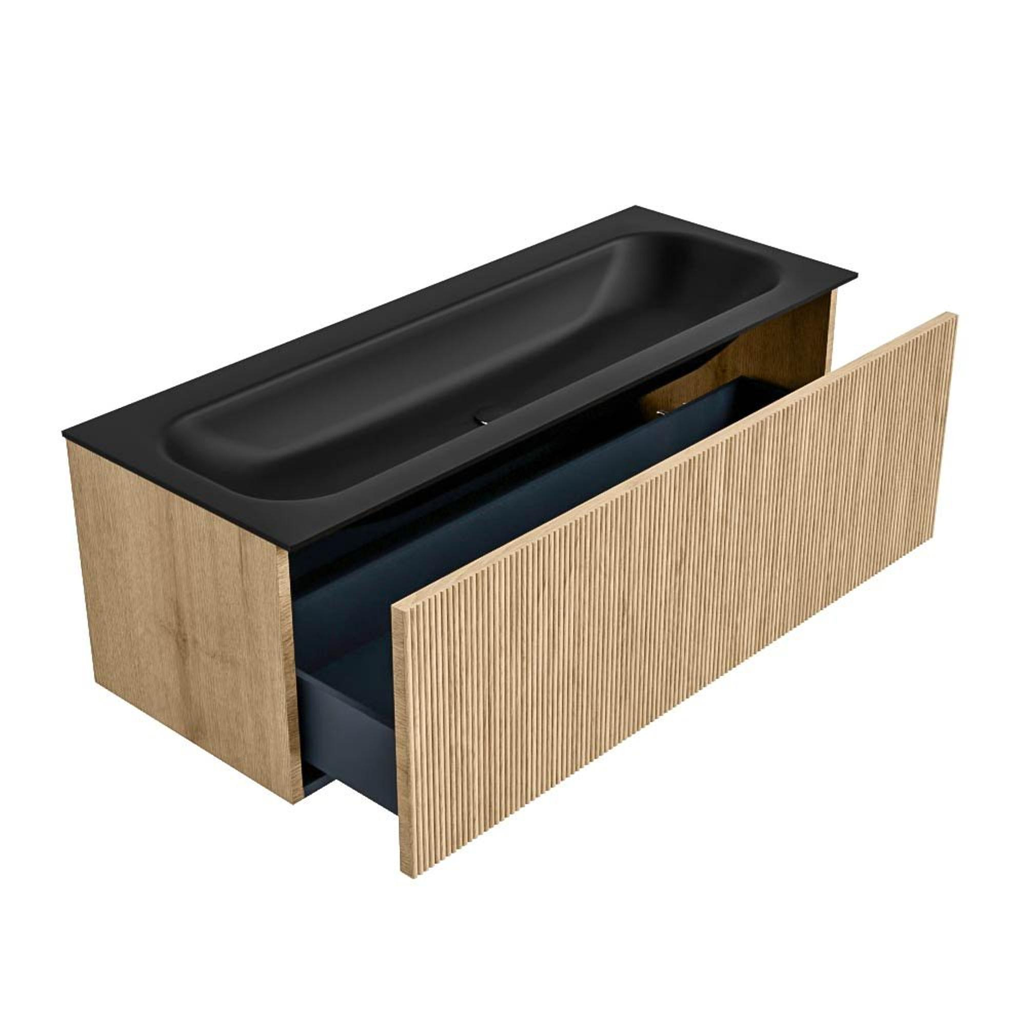 MONDIAZ KURVE 120cm badmeubel kleur Oak met 1 lade. Wastafel BIG LARGE midden 2 kraangaten Urban.