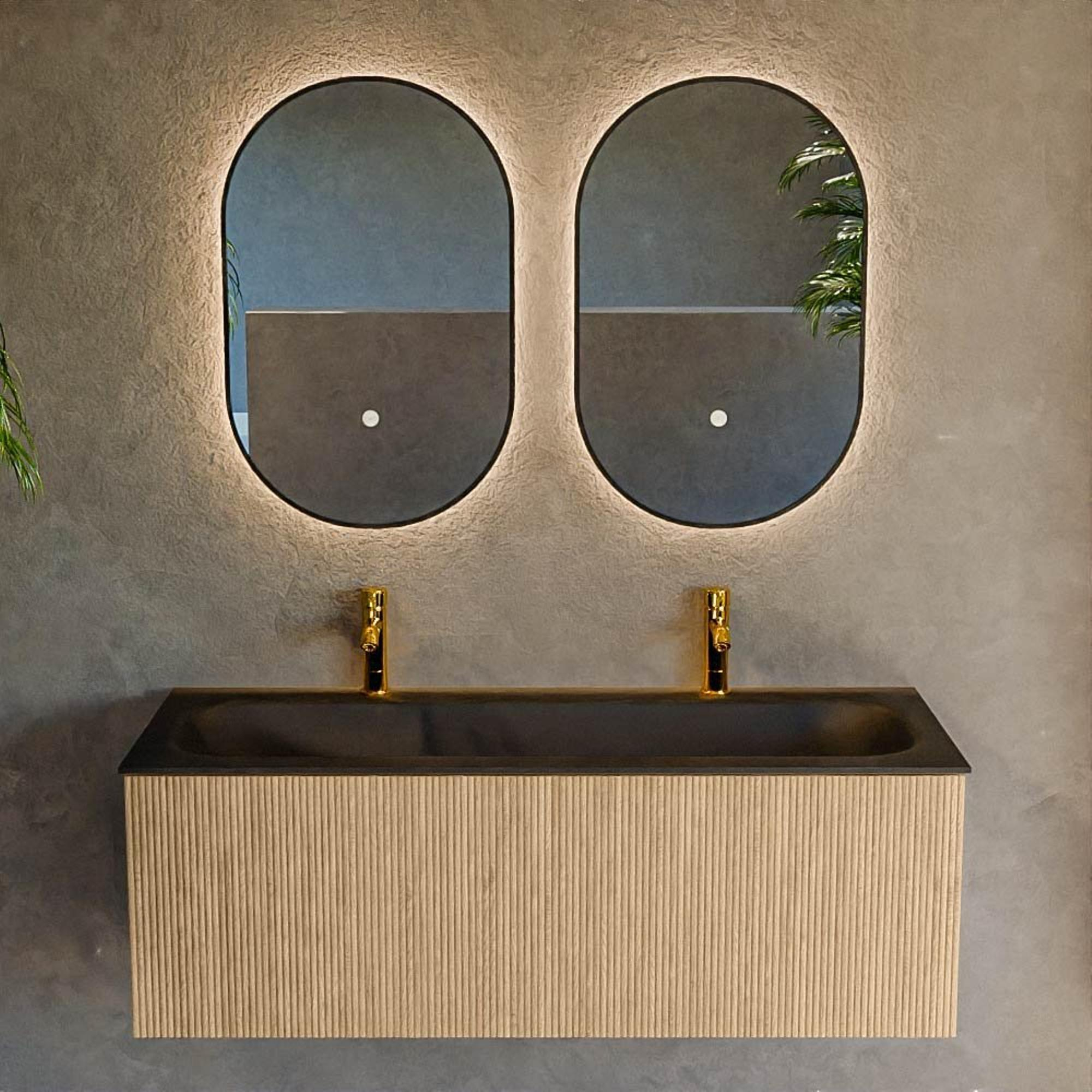 Het ultieme badmeubel dat je badkamer transformeert tot een oase van verfijning. Met zijn halfronde, verticale stroken van massief eiken, verkrijgbaar in de kleuren Oak en Walnut, straalt KURVE vakmanschap uit in elk detail. De zachte rondingen en slim ontworpen deurtjes, elk 40cm hoog, nodigen uit tot gebruik, terwijl de ruimte binnenin optimaal benut wordt dankzij de royale lade van dezelfde hoogte.