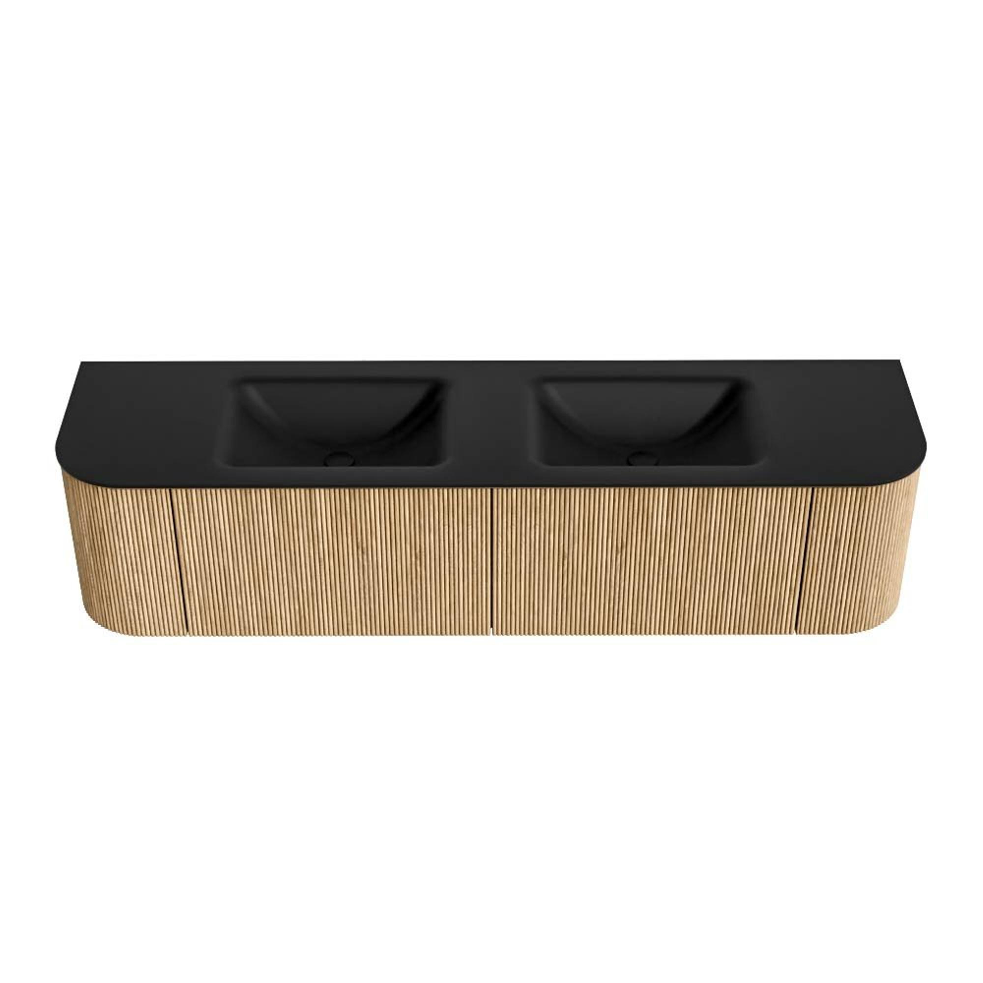 MONDIAZ KURVE 180cm badmeubel met module 25 Len R kleur Oak met 2 lades en 2 deuren. Wastafel CLOUD dubbel zonder kraangat Urban.