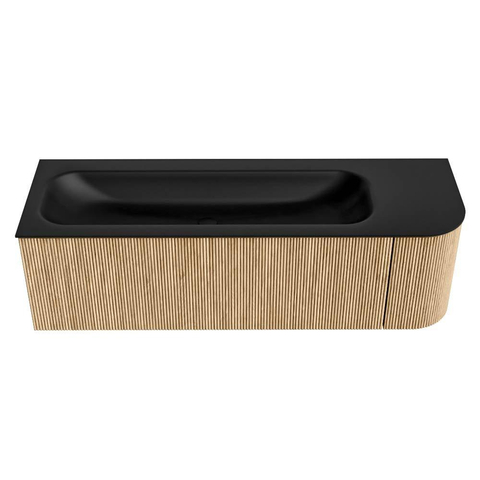 MONDIAZ KURVE 145cm badmeubel met module 25 R kleur Oak met 1 lade en 1 deur. Wastafel BIG LARGE links zonder kraangat Urban.