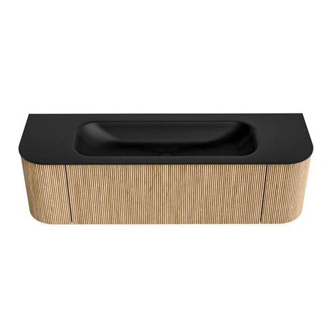 MONDIAZ KURVE 150cm badmeubel met module 25 Len R kleur Oak met 1 lade en 2 deuren. Wastafel BIG MEDIUM midden 1 kraangat Urban.