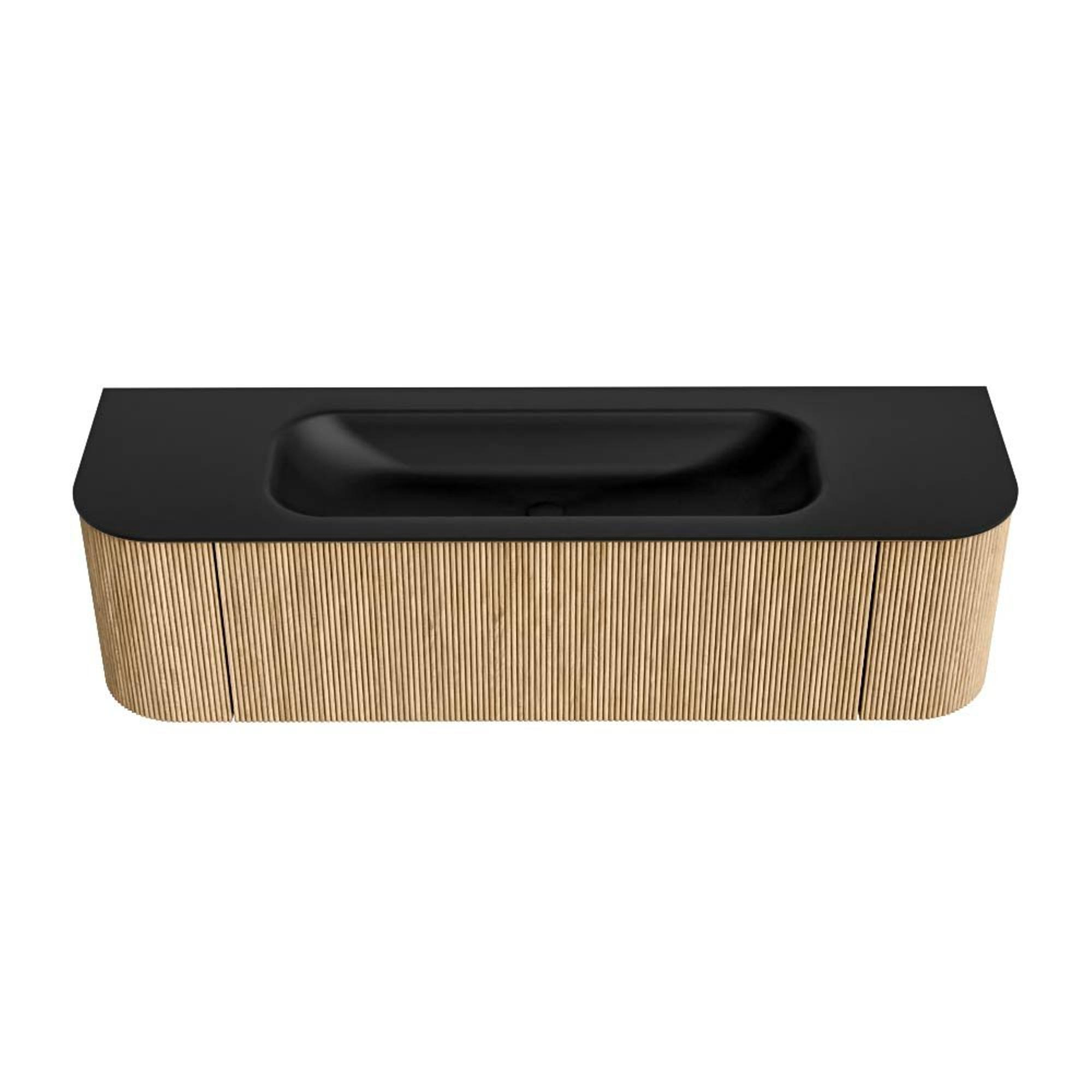 MONDIAZ KURVE 160cm badmeubel met module 25 Len R kleur Oak met 1 lade en 2 deuren. Wastafel BIG MEDIUM midden zonder kraangat Urban.