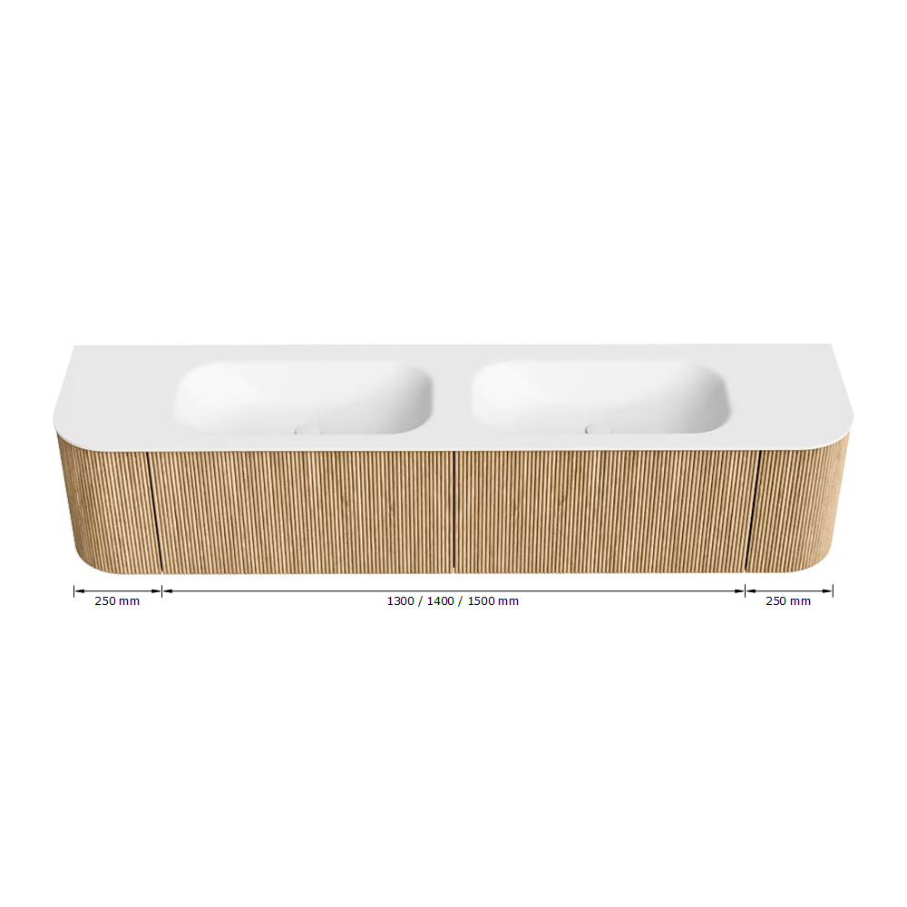 Het ultieme badmeubel dat je badkamer transformeert tot een oase van verfijning. Met zijn halfronde, verticale stroken van massief eiken, verkrijgbaar in de kleuren Oak en Walnut, straalt KURVE vakmanschap uit in elk detail. De zachte rondingen en slim ontworpen deurtjes, elk 40cm hoog, nodigen uit tot gebruik, terwijl de ruimte binnenin optimaal benut wordt dankzij de royale lade van dezelfde hoogte.
