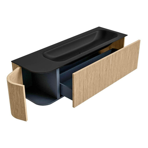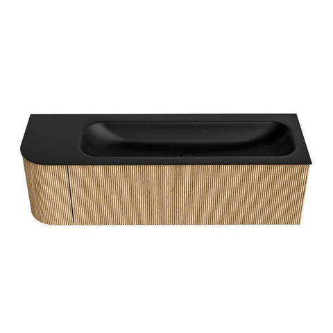 MONDIAZ KURVE 145cm badmeubel met module 25 L kleur Oak met 1 lade en 1 deur. Wastafel BIG LARGE rechts 1 kraangat Urban.