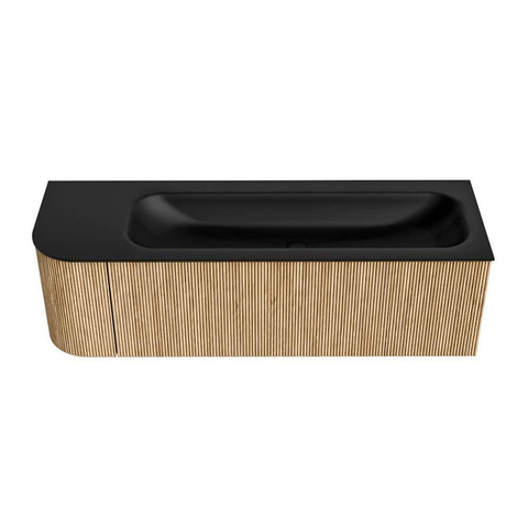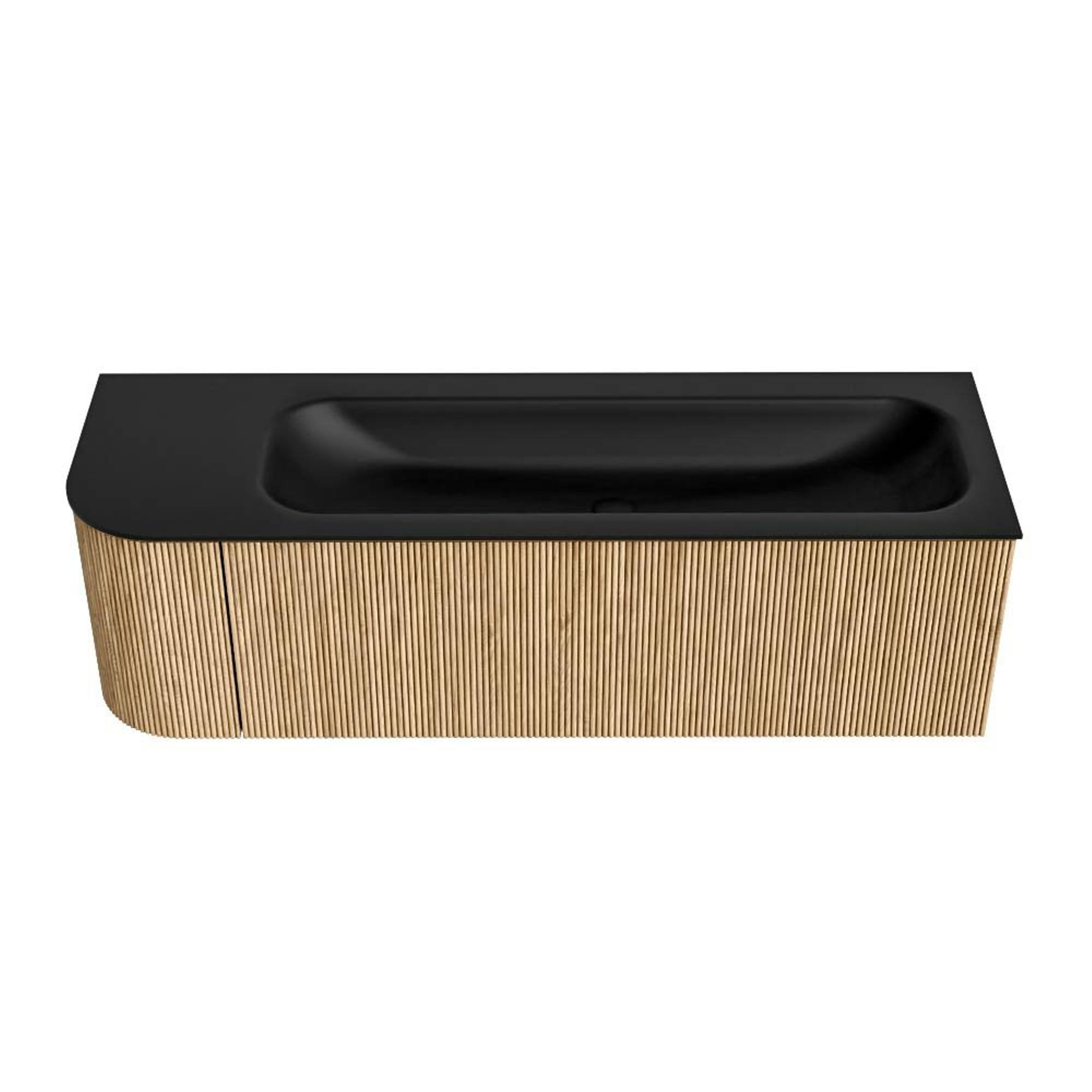MONDIAZ KURVE 145cm badmeubel met module 25 L kleur Oak met 1 lade en 1 deur. Wastafel BIG LARGE rechts 2 kraangaten Urban.