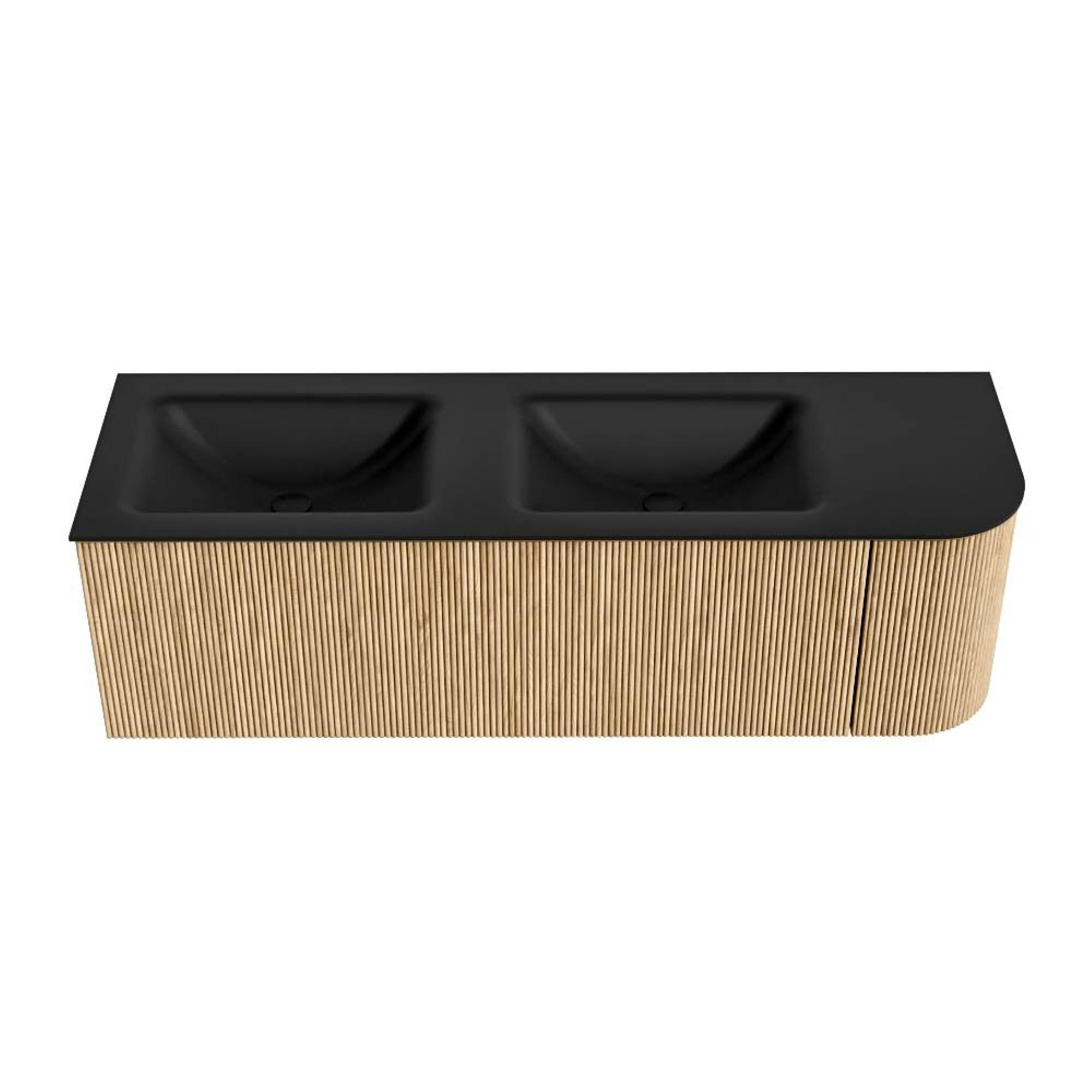 MONDIAZ KURVE 145cm badmeubel met module 25 R kleur Oak met 1 lade en 1 deur. Wastafel CLOUD dubbel / links 2 kraangaten Urban.