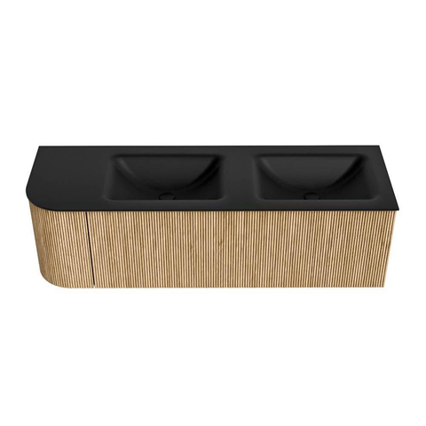 MONDIAZ KURVE 145cm badmeubel met module 25 L kleur Oak met 1 lade en 1 deur. Wastafel CLOUD dubbel / rechts 2 kraangaten Urban.