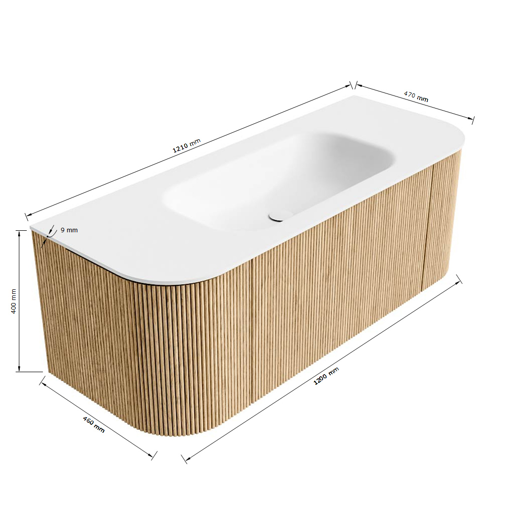 - Breedte wastafel: 121cm
