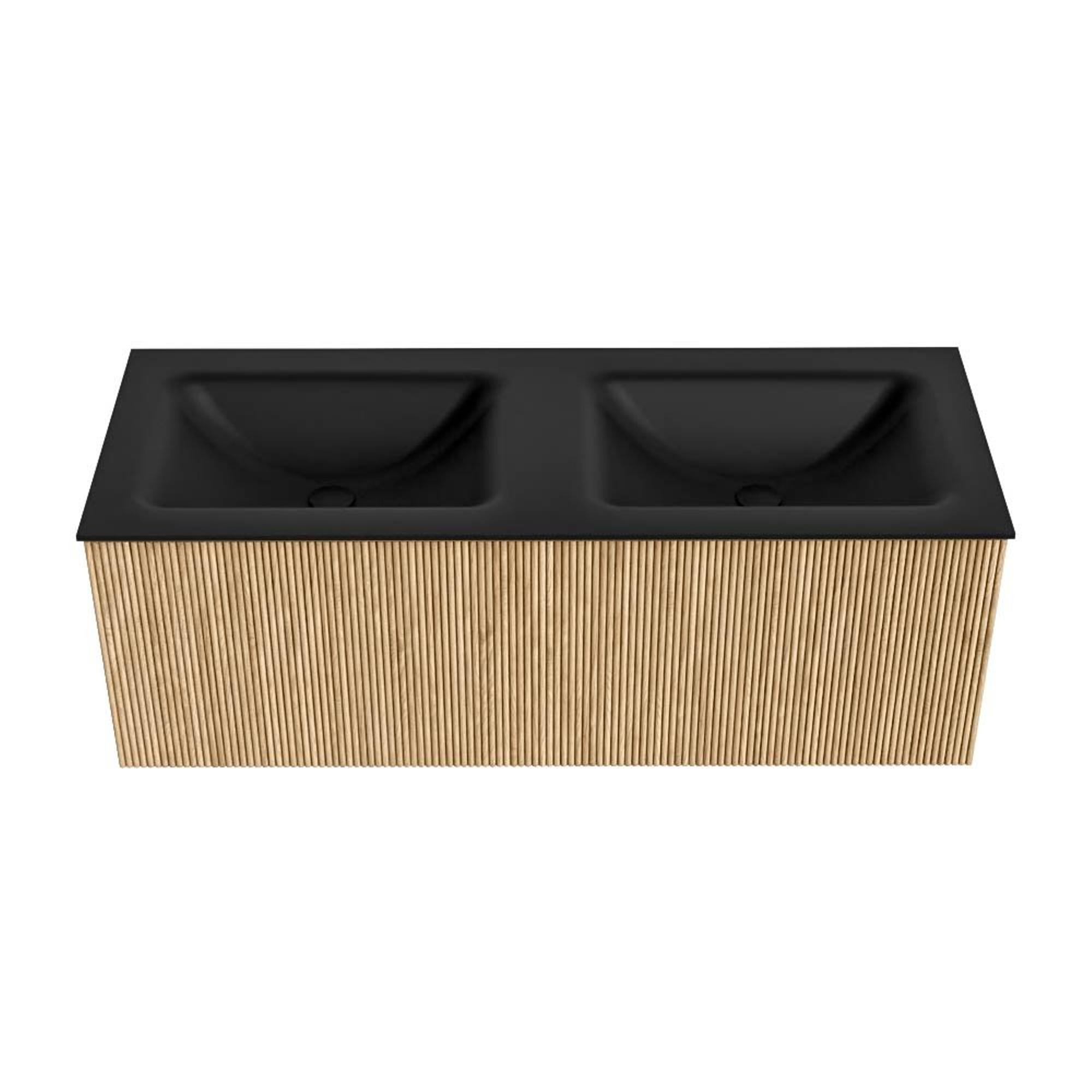 MONDIAZ KURVE 120cm badmeubel kleur Oak met 1 lade. Wastafel CLOUD dubbel zonder kraangat Urban.