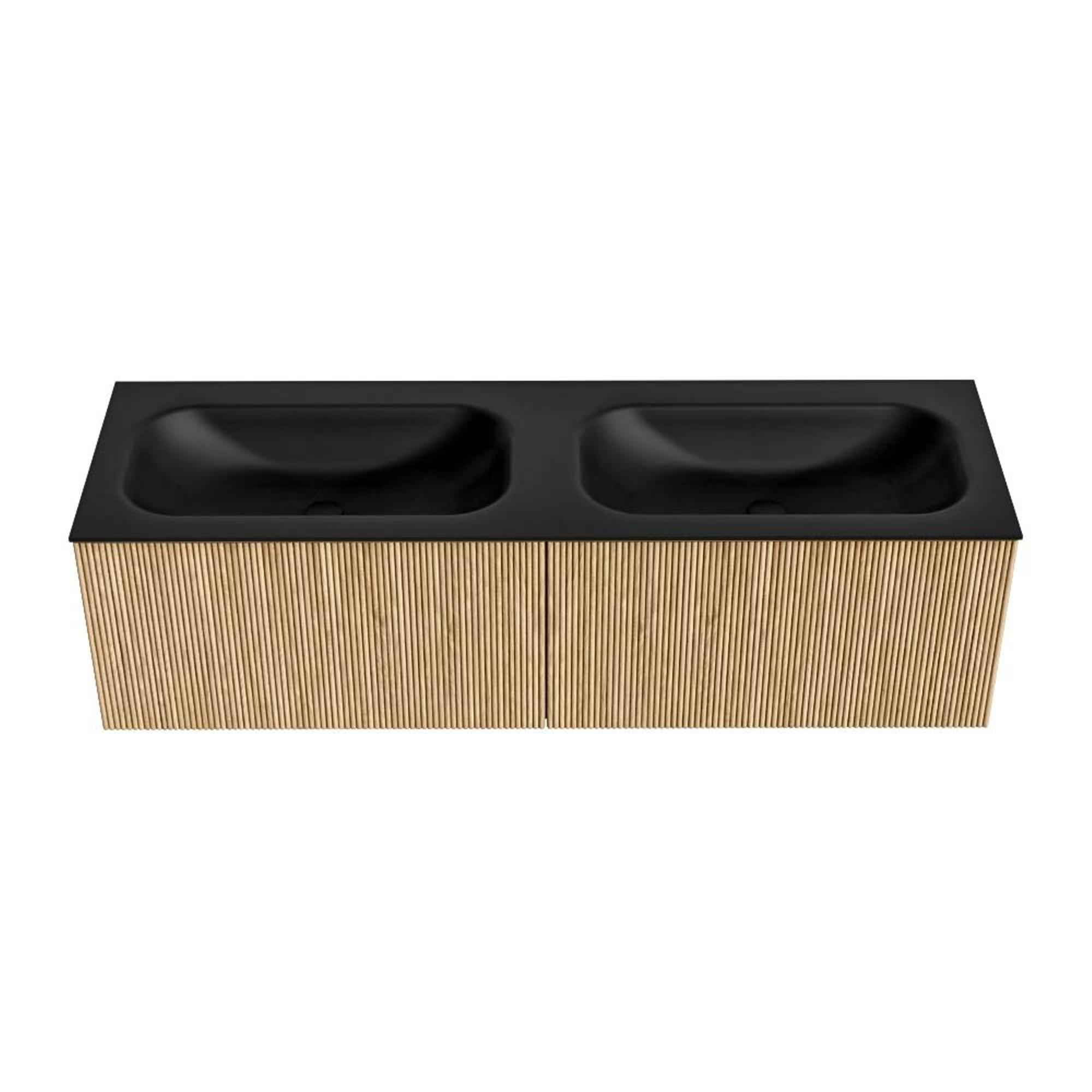MONDIAZ KURVE 150cm badmeubel kleur Oak met 2 lades. Wastafel BIG SMALL dubbel 2 kraangaten Urban.