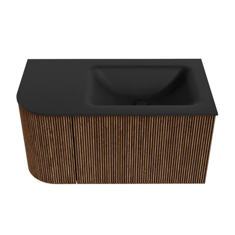 MONDIAZ KURVE 85cm badmeubel met module 25 L kleur Walnut met 1 lade en 1 deur. Wastafel CLOUD rechts 1 kraangat Urban.