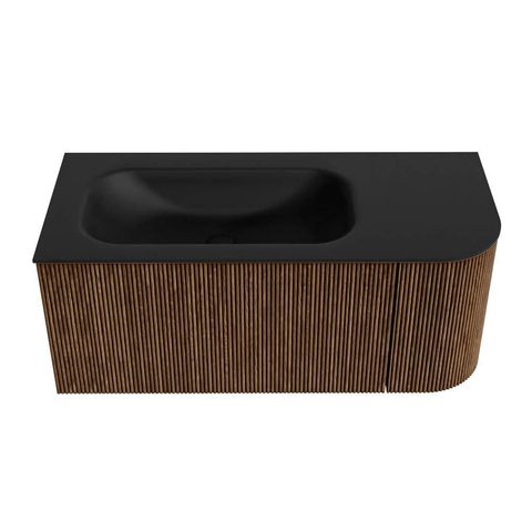 MONDIAZ KURVE 105cm badmeubel met module 25 R kleur Walnut met 1 lade en 1 deur. Wastafel BIG SMALL links 1 kraangat Urban.