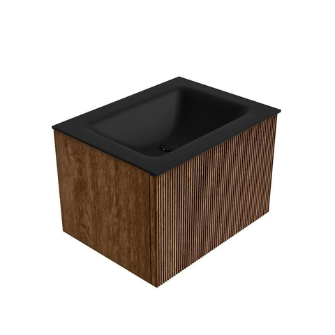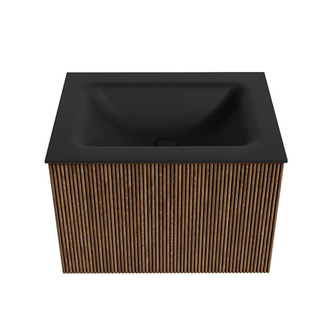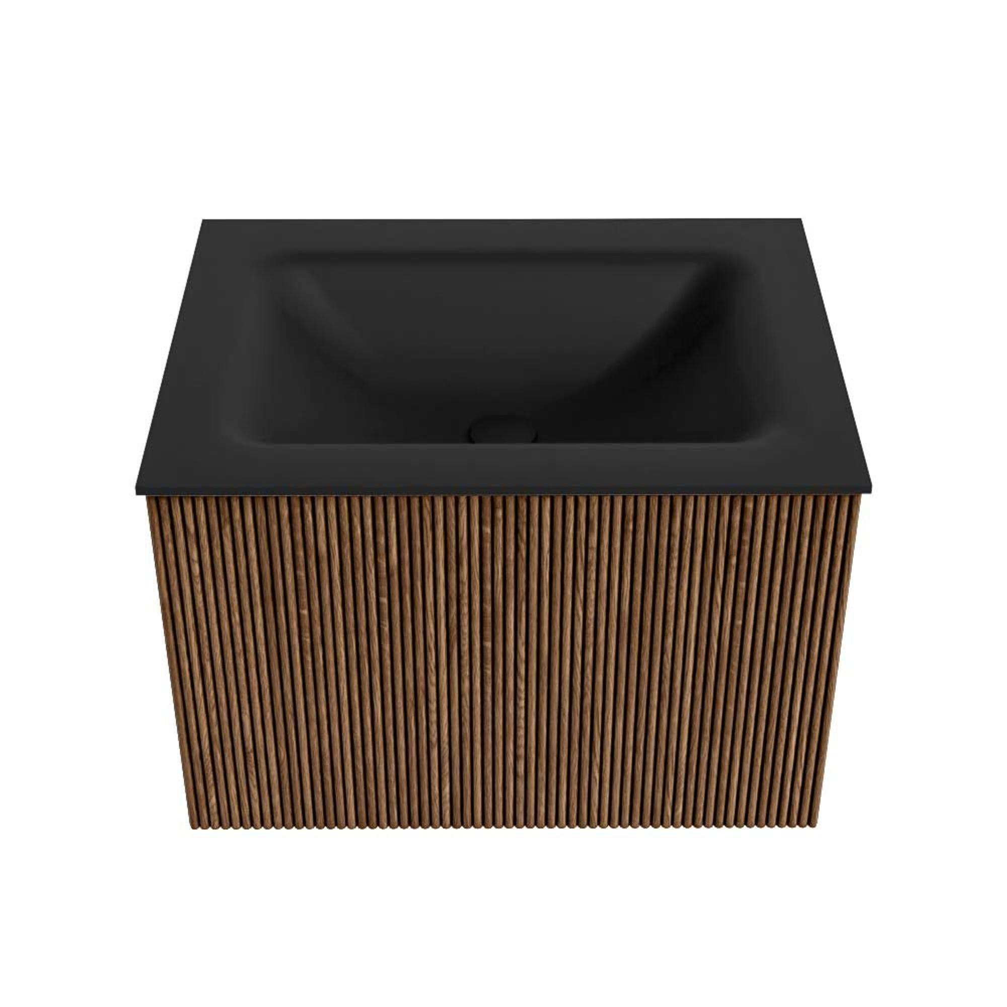MONDIAZ KURVE 60cm badmeubel kleur Walnut met 1 lade. Wastafel CLOUD midden 1 kraangat Urban.