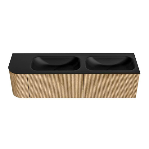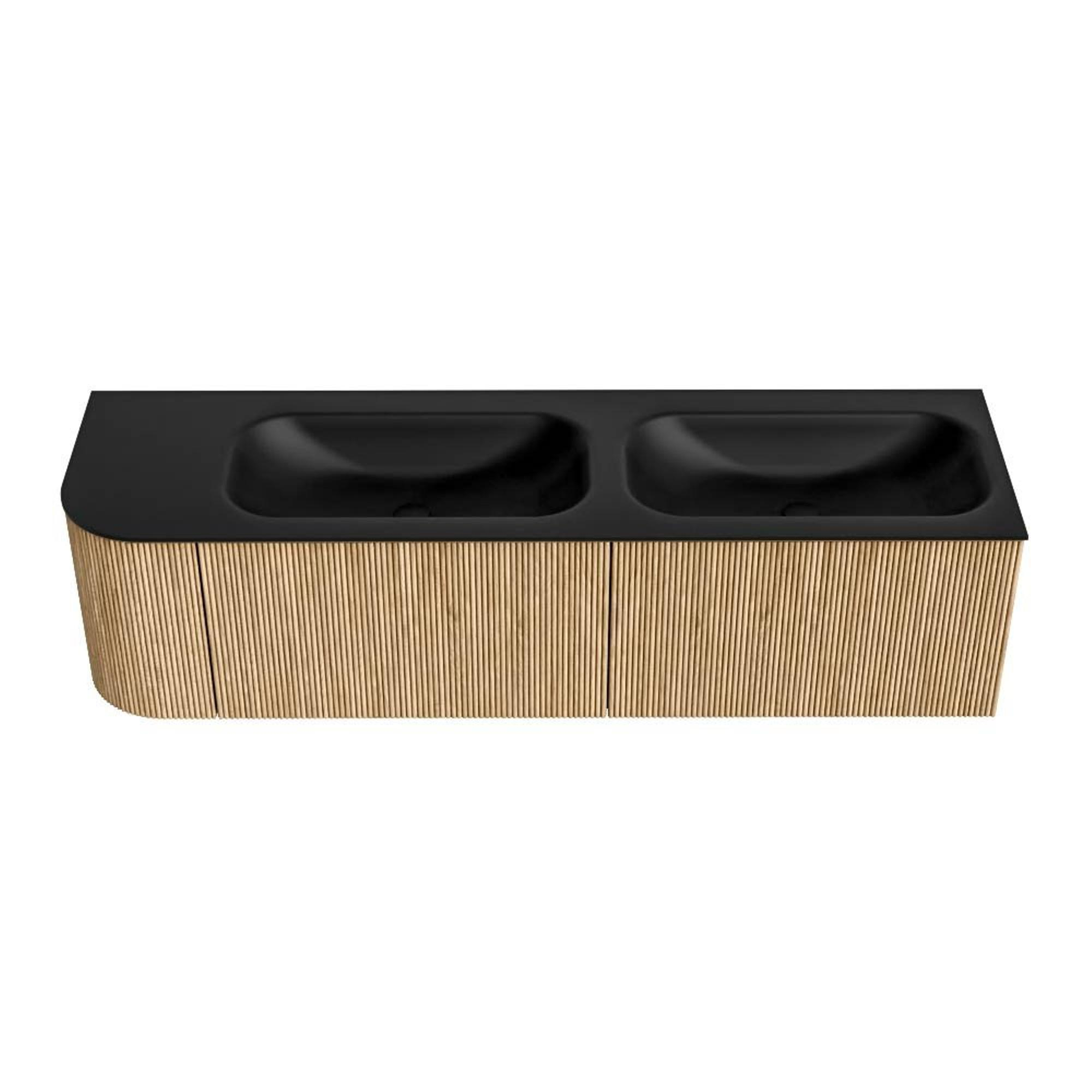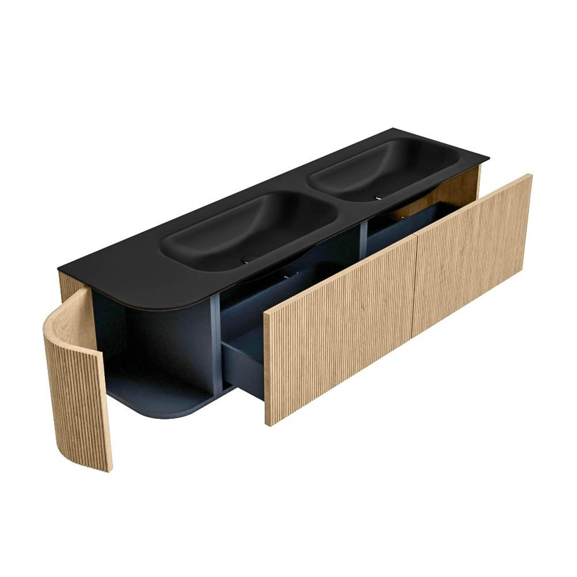 MONDIAZ KURVE 165cm badmeubel met module 25 L kleur Oak met 2 lades en 1 deur. Wastafel BIG SMALL dubbel / rechts zonder kraangat Urban.